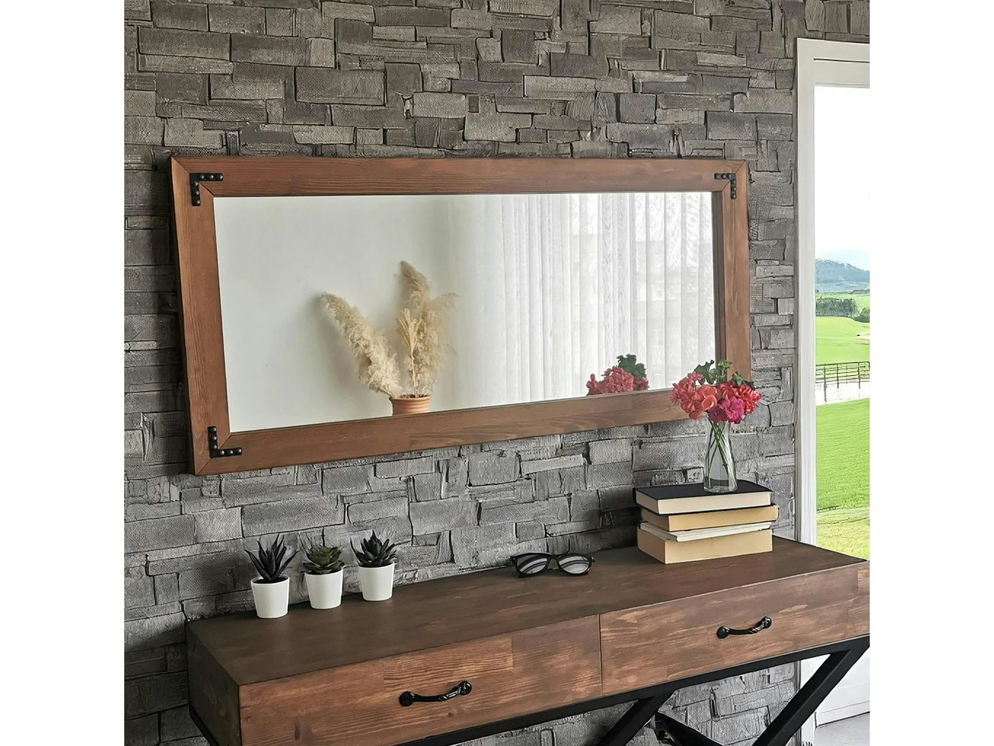 Miroir mural en bois brun - format horizontal HILO