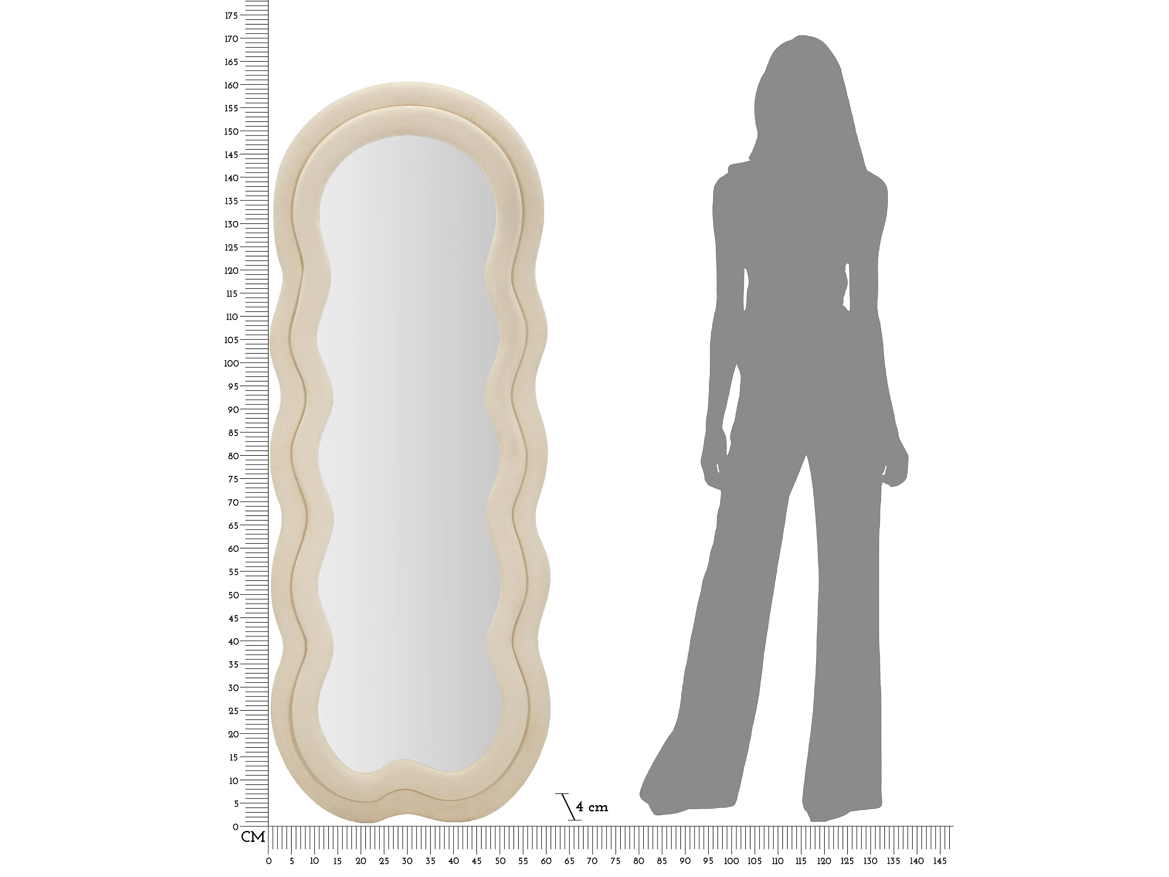 Miroir Mural en Velours "Wavy" 160cm Crème