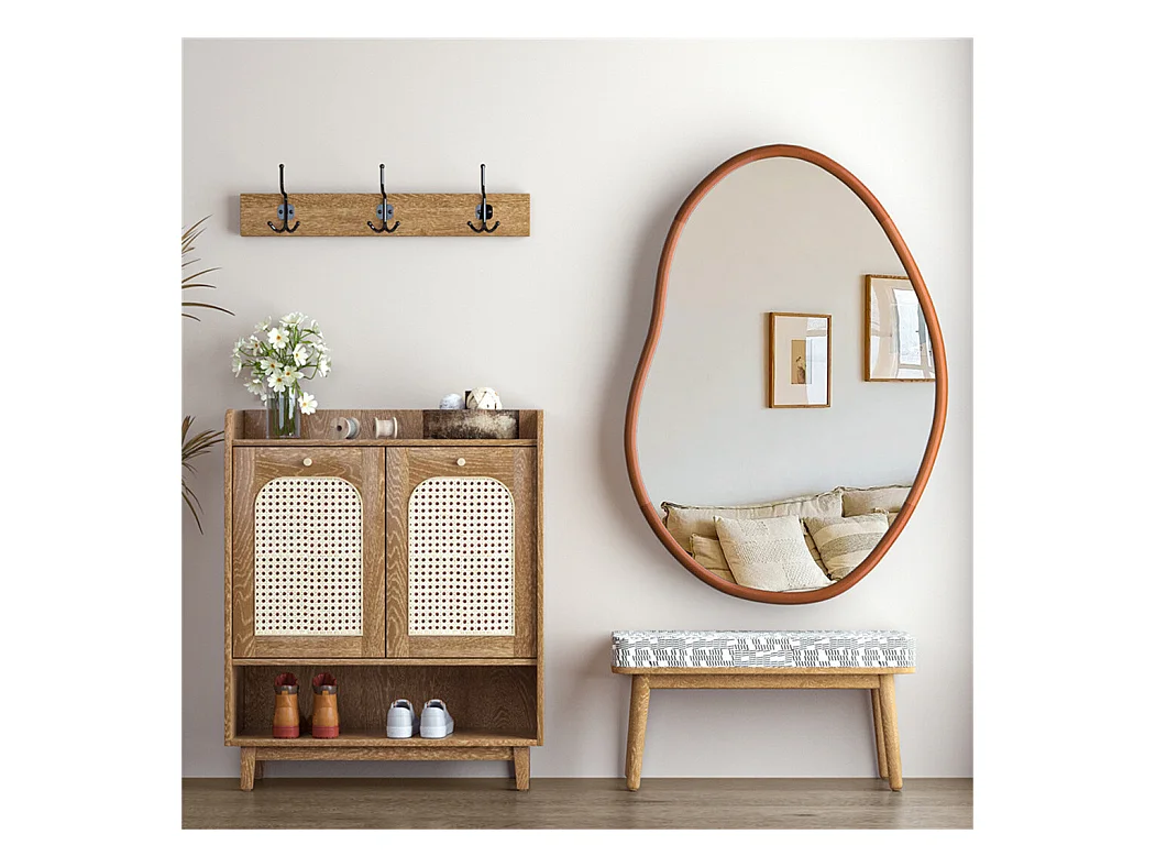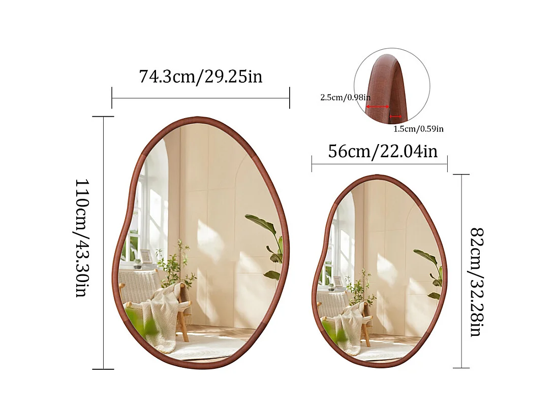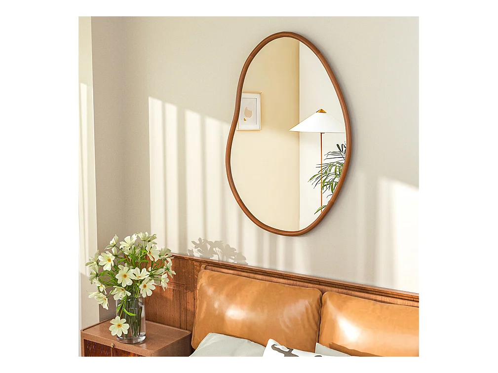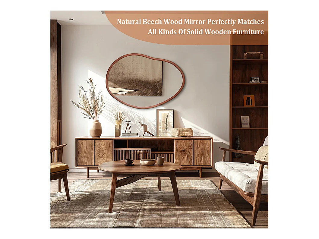 Miroir mural en verre argenté avec cadre en bois massif - L 56 x H 82 cm - Miroir asymétrique - Miroir moderne