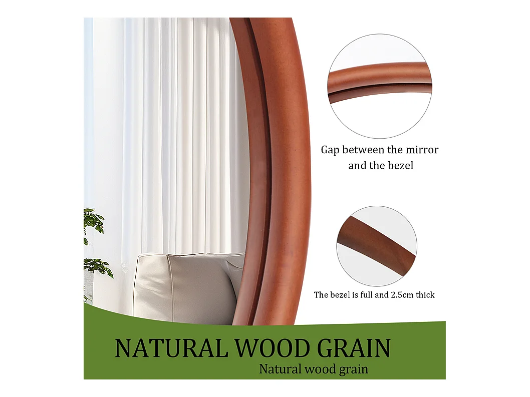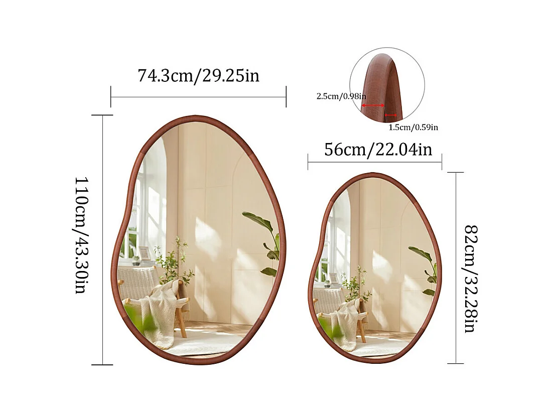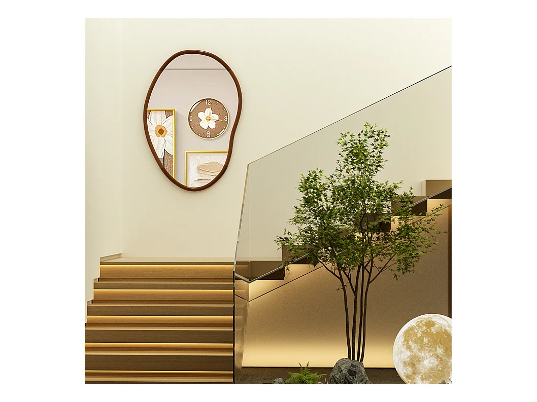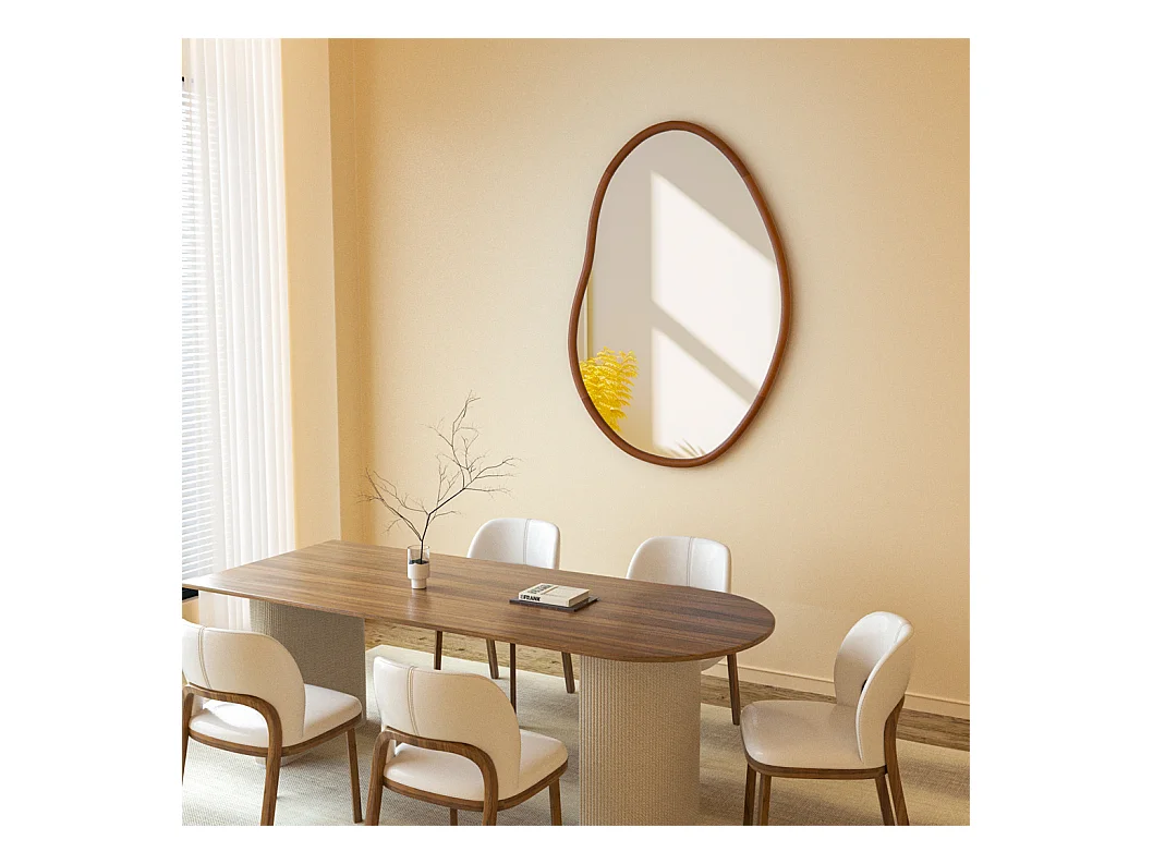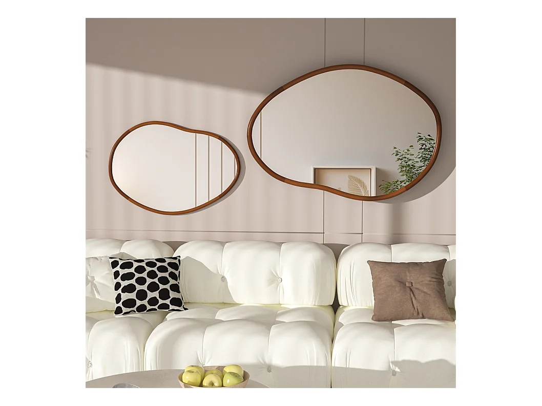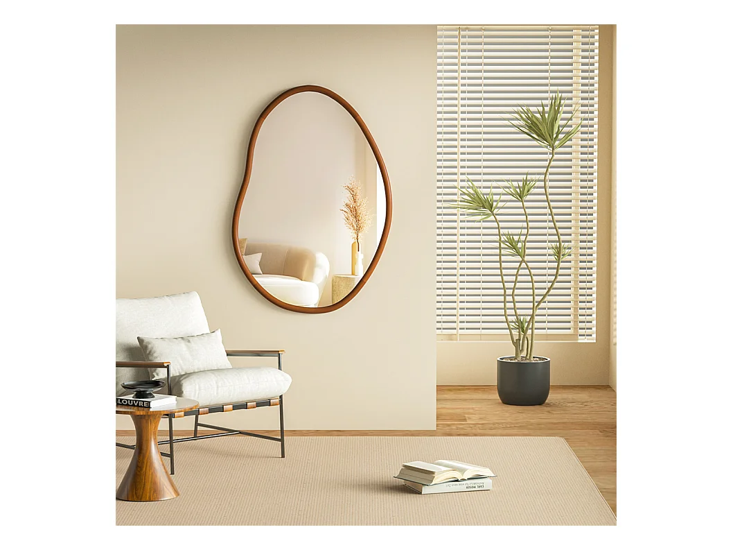 Miroir mural en verre argenté avec cadre en bois massif - L 76.2 x H 109.2cm - Miroir asymétrique - Miroir moderne