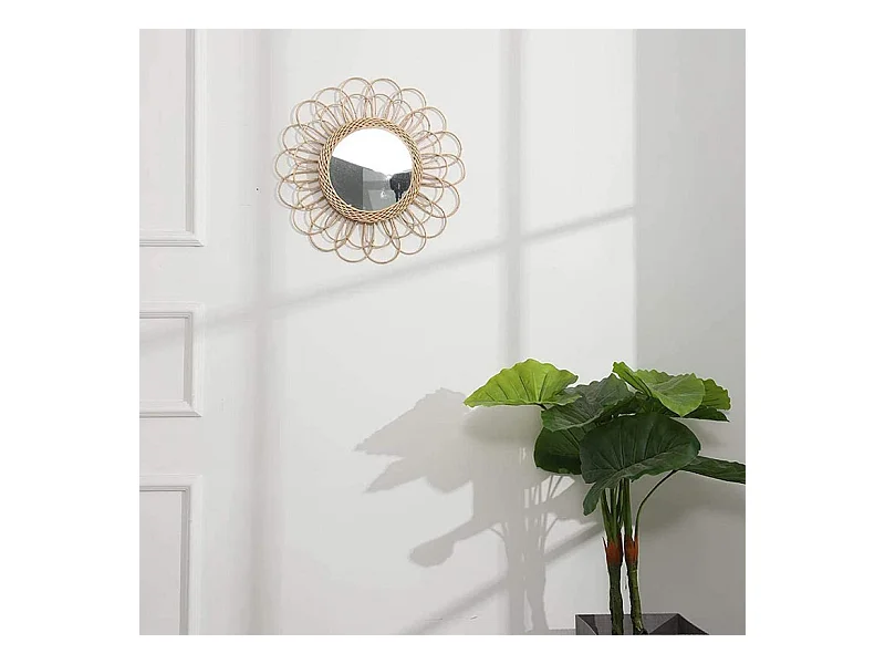 Miroir Mural Design en Rotin "Aina" 70cm Naturel