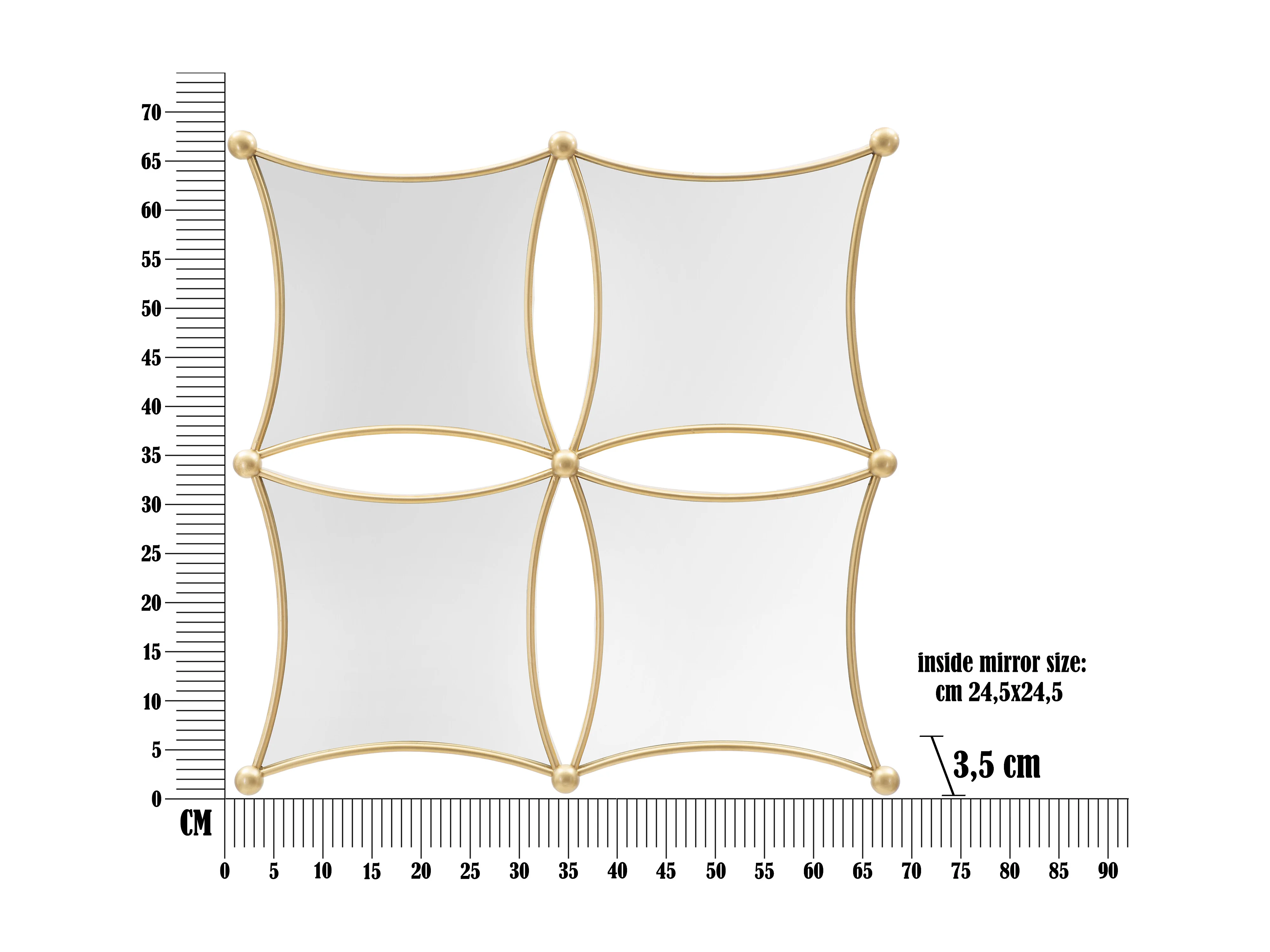 Miroir Mural Composition Déco "Jalo" 68cm Or