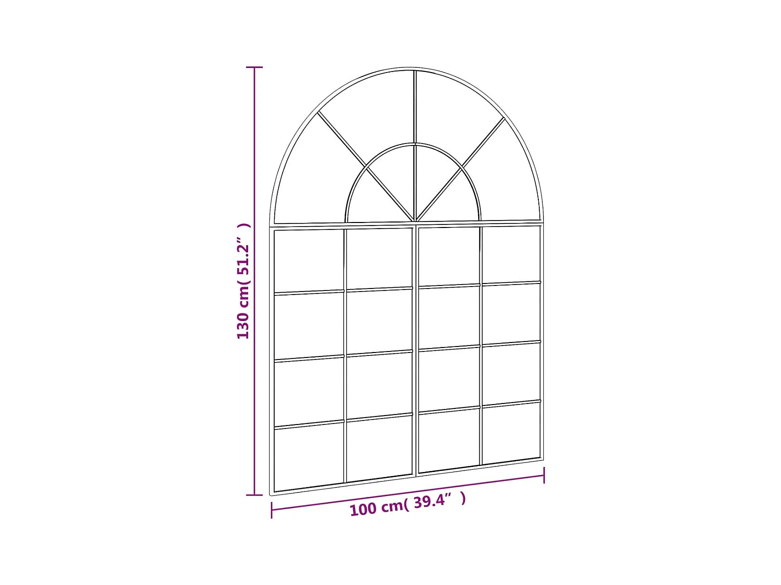 Miroir mural noir 100x130 cm arche fer
