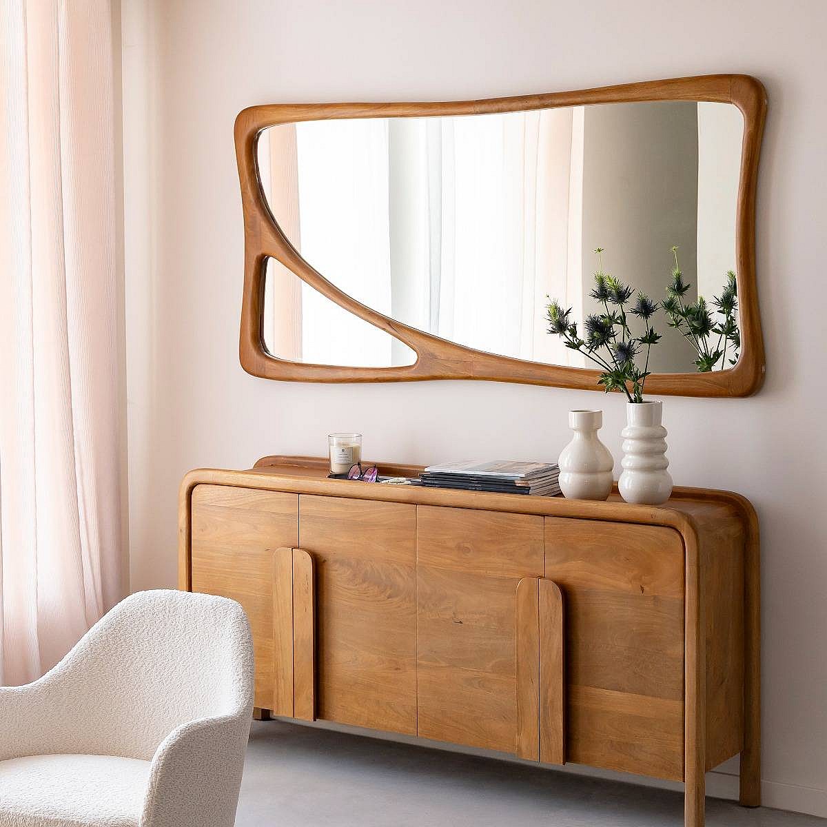 Miroir mural organique en bois de manguier Marley