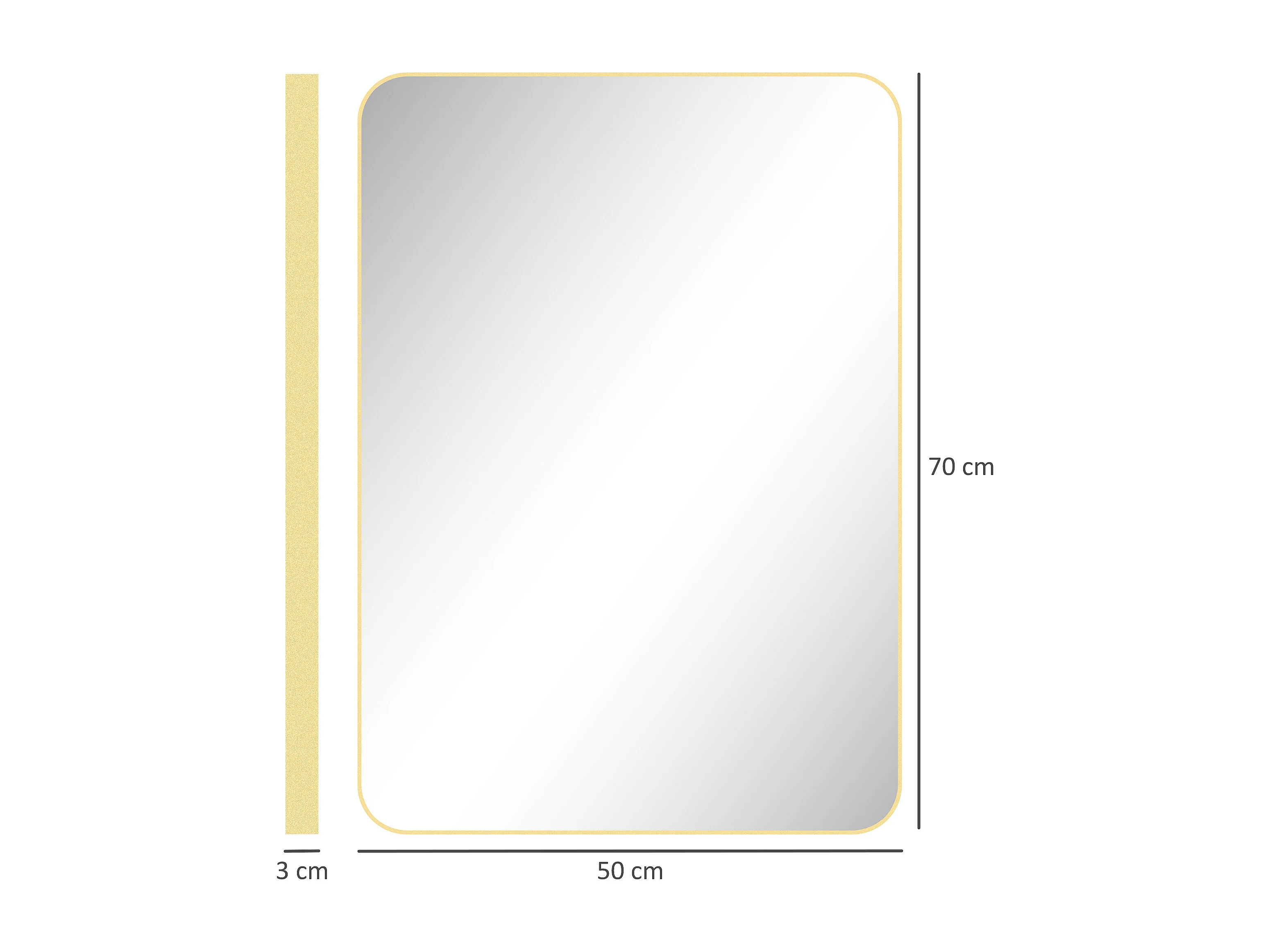 Miroir mural rectangulaire 50 x 70 cm cadre alliage aluminium doré