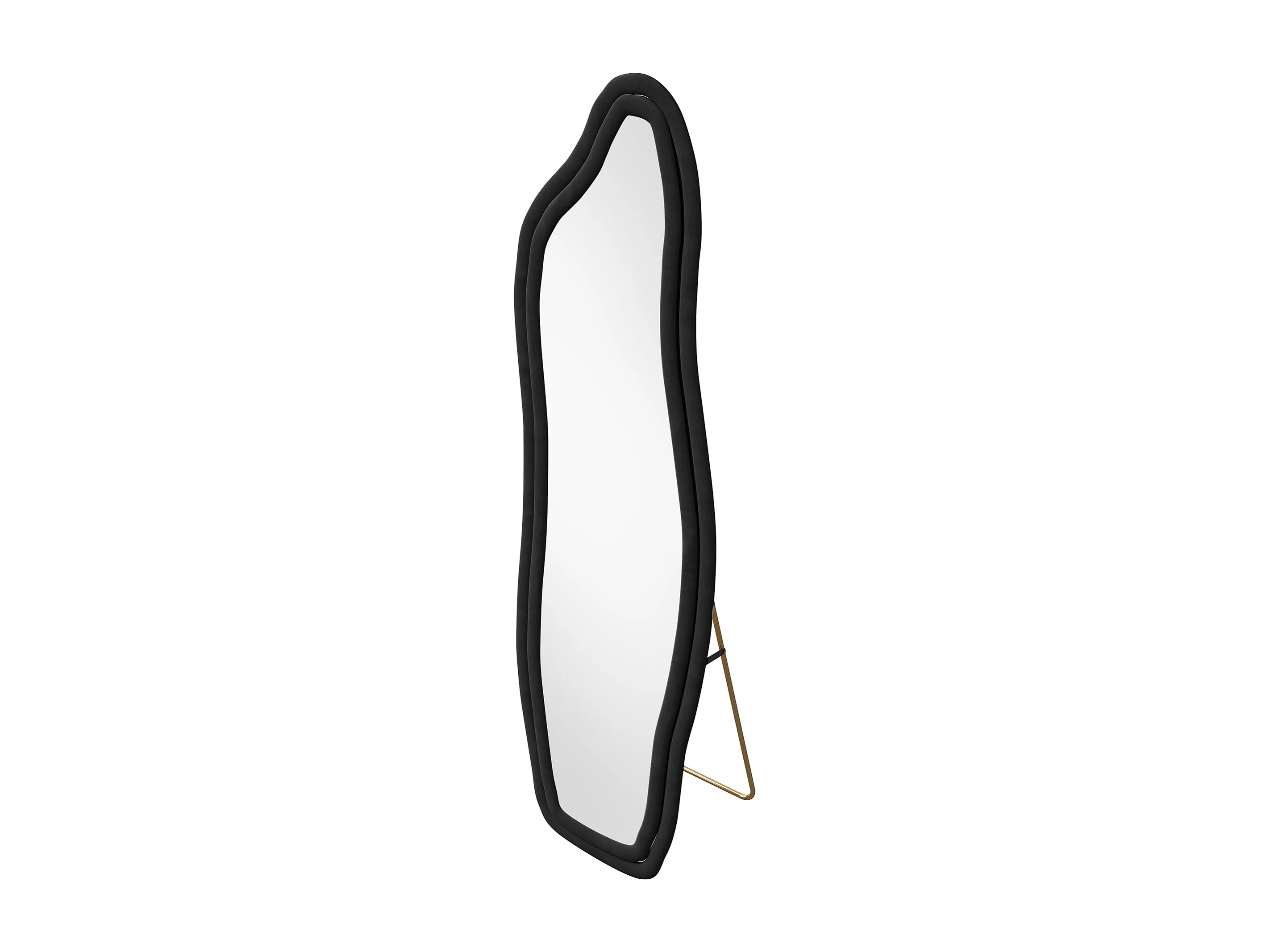 Miroir organique en tissu Velours de cristal, Miroir sur pied, monté au mur, grand miroir debout 160x50 cm, Verre trempé haute définition, Noir