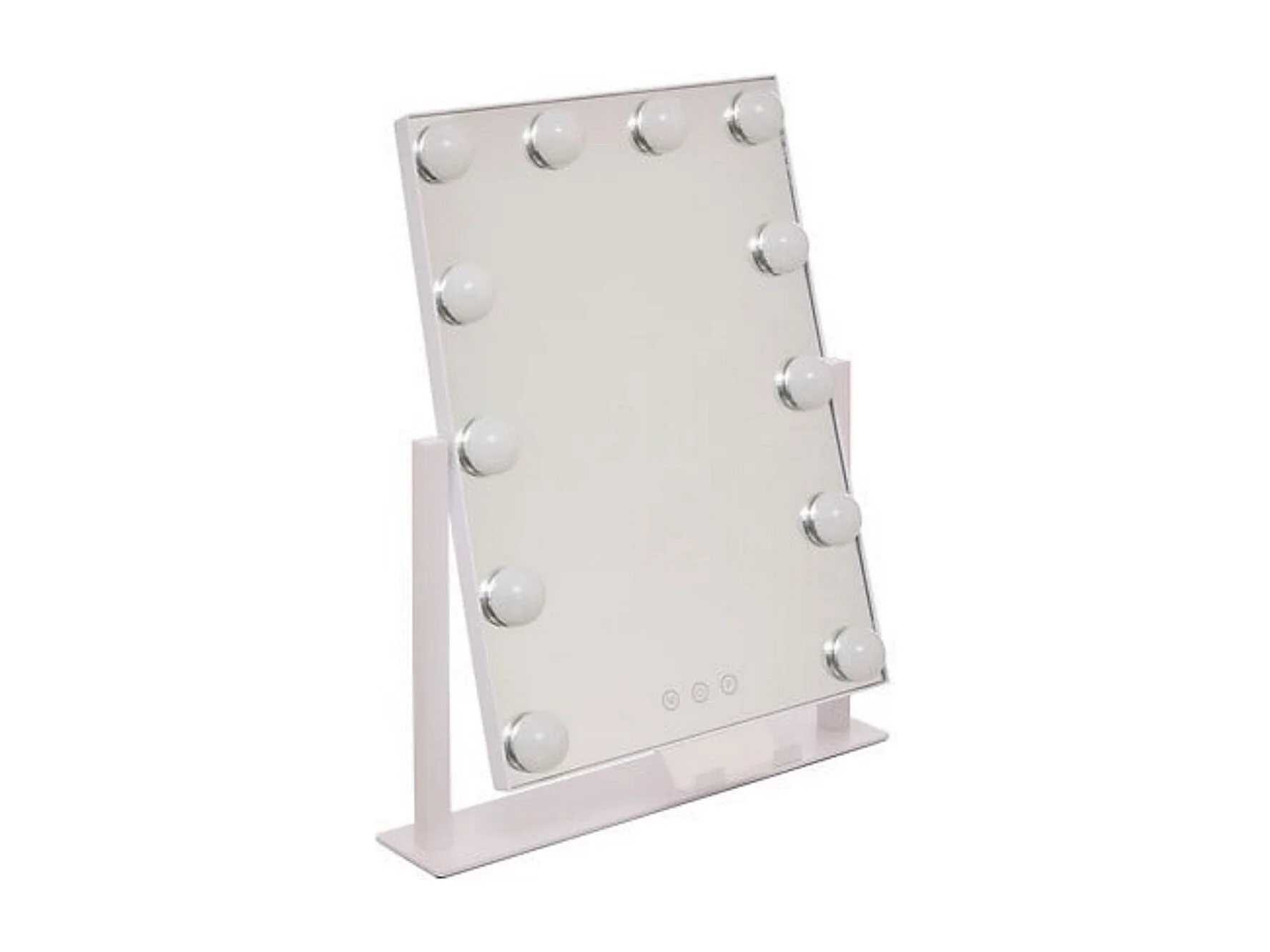 Miroir maquillage Hollywood lumineux LED intensité réglable grossissant rotatif charge USB support blanc