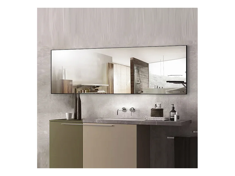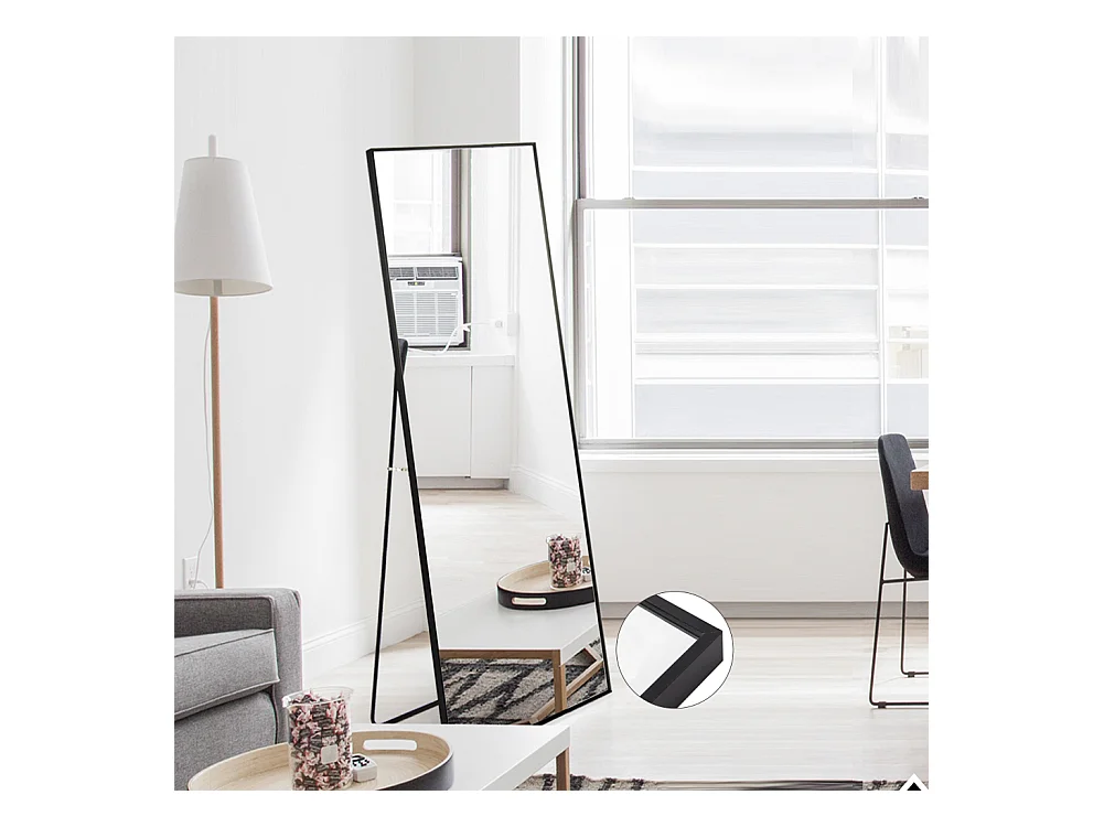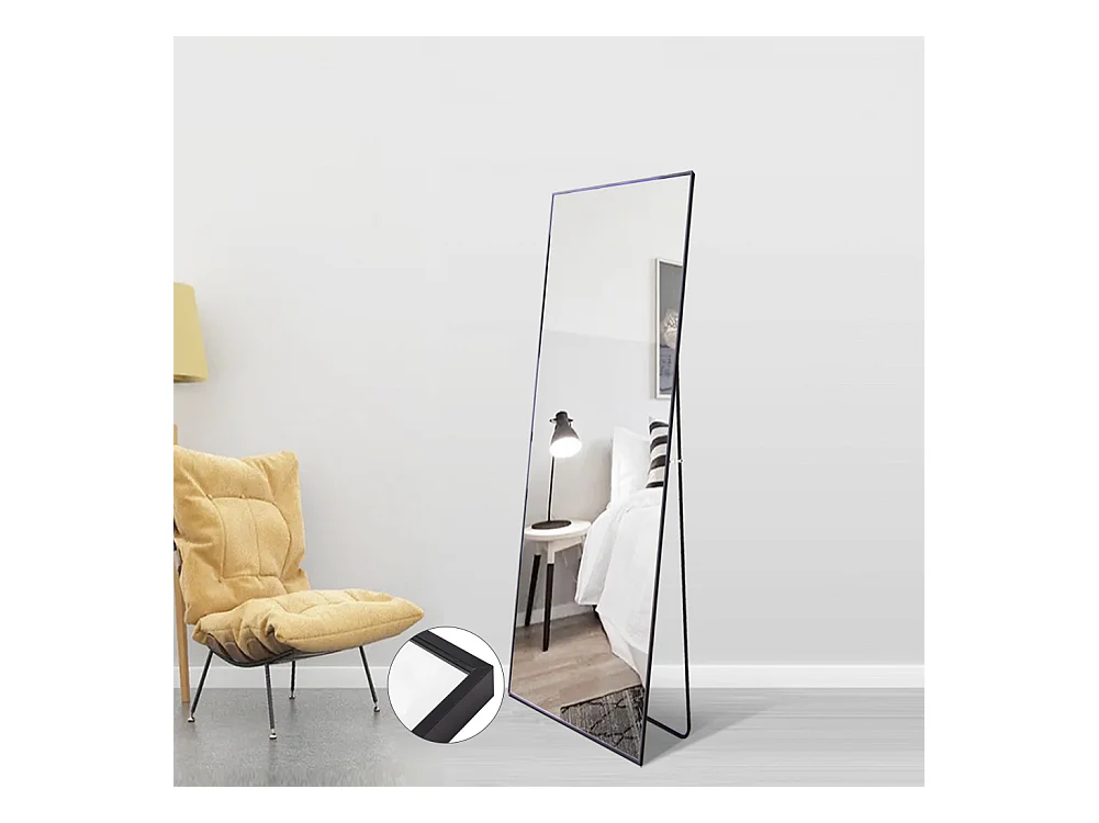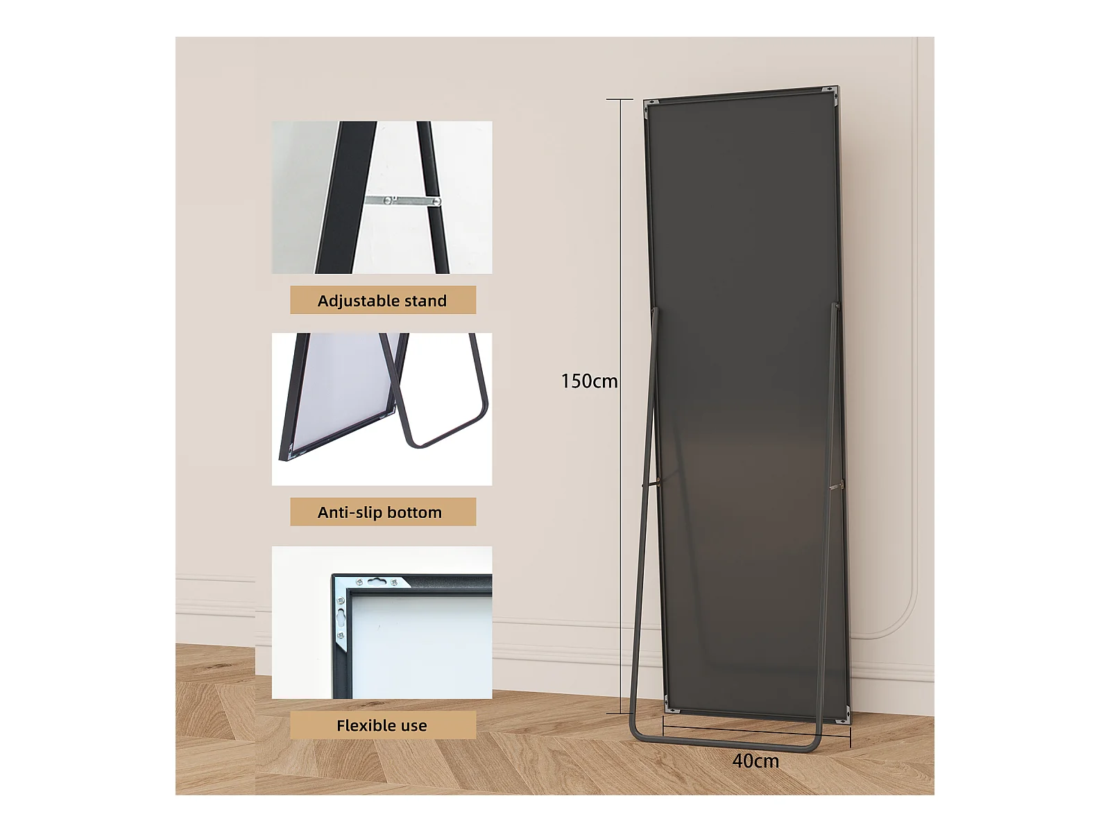 Miroir pleine longueur en verre trempé, cadre en alliage d'aluminium, noir, 150*40cm
