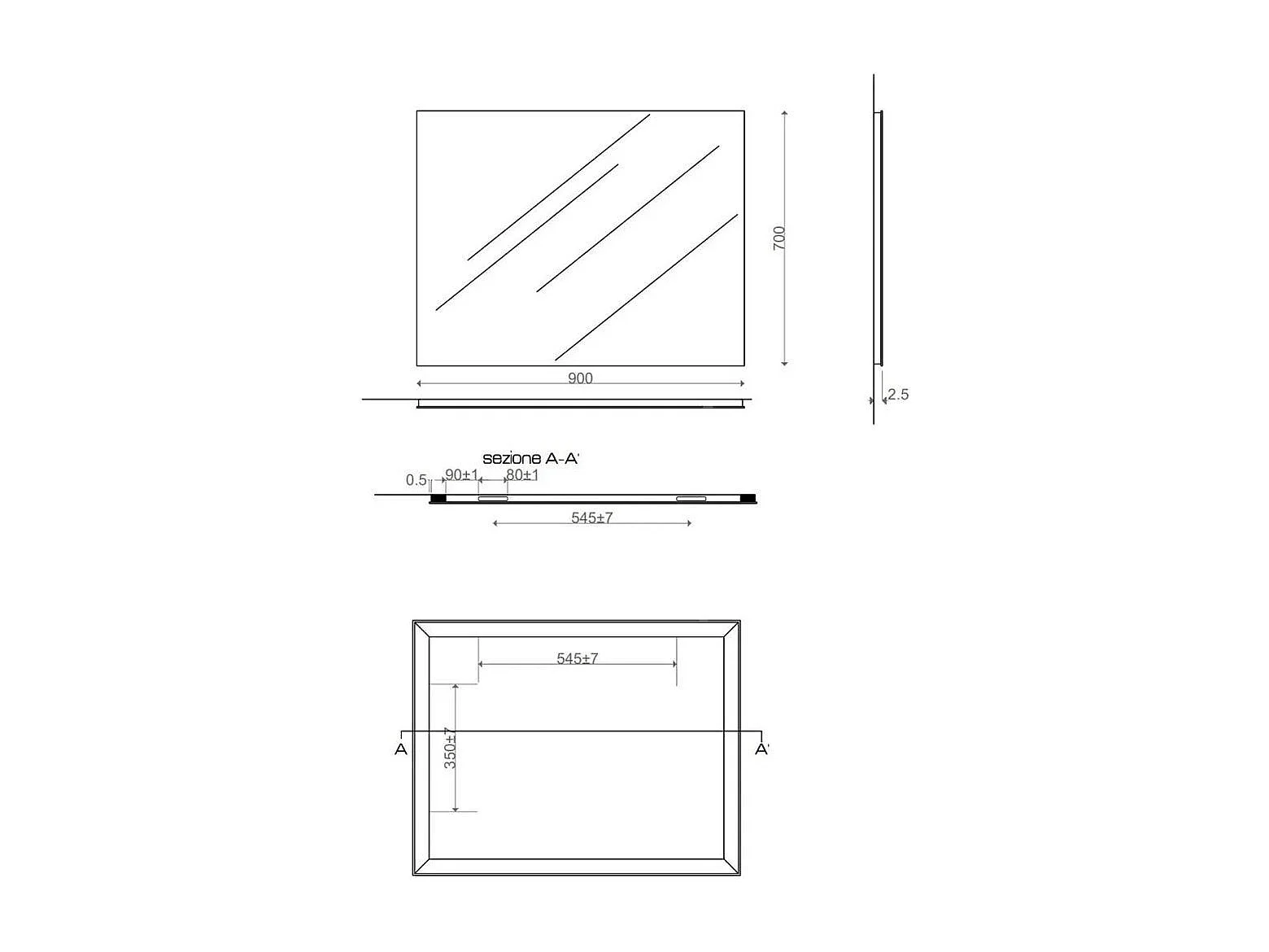 Miroir Pour Salle De Bain 90X70 Cm Réversible Avec Cadre À Support