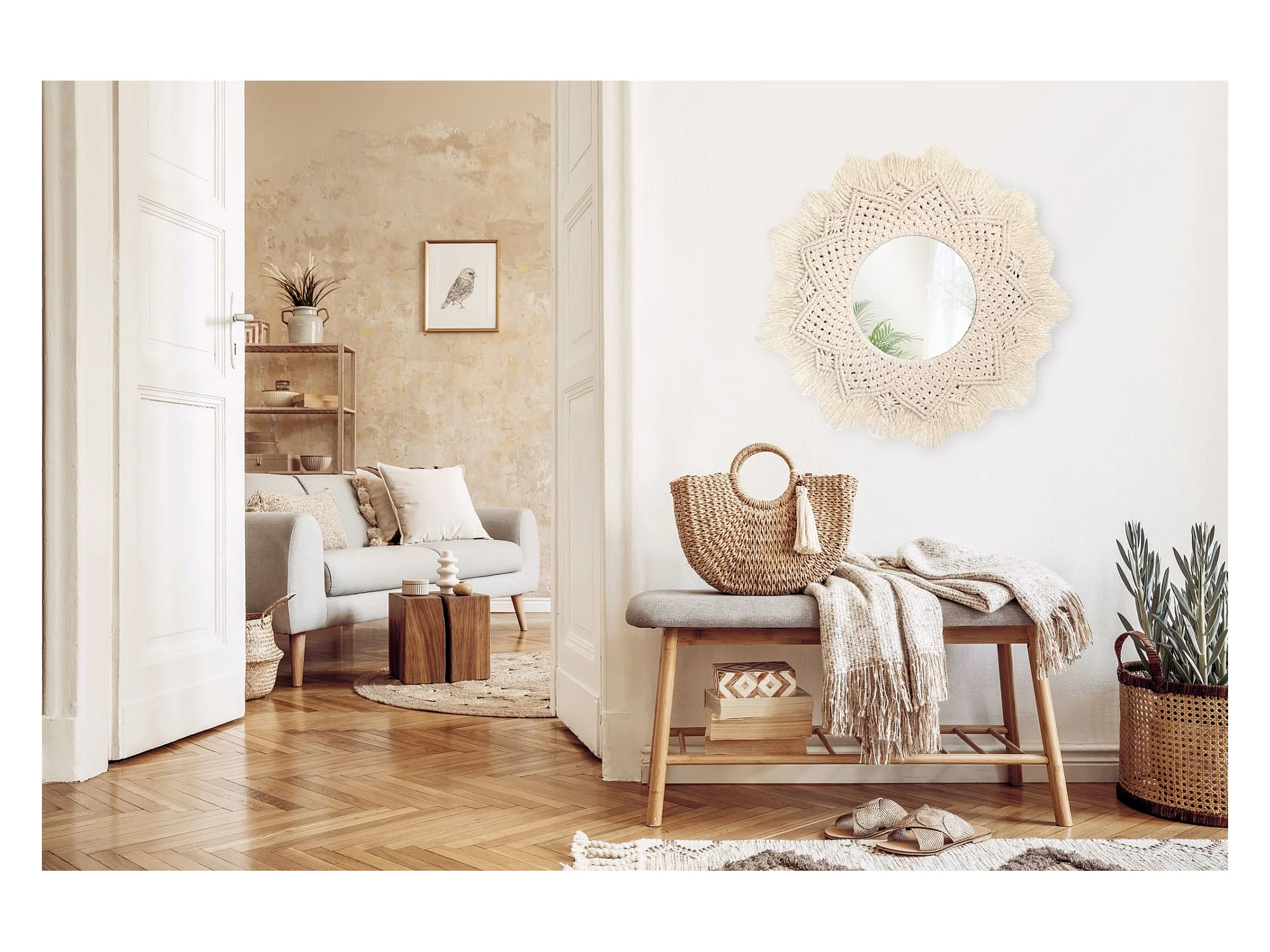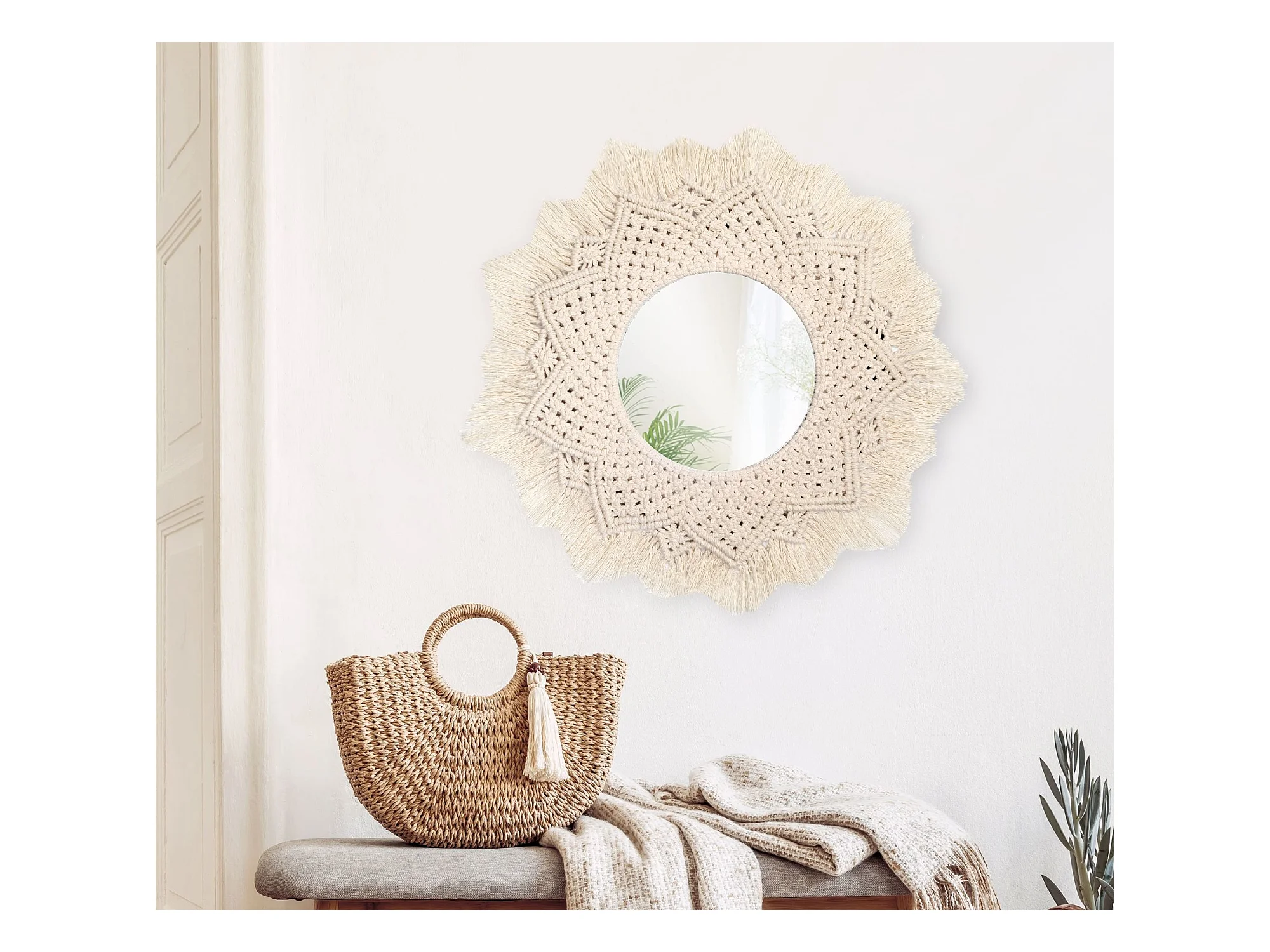 MIROIR REA BOHO 60CM 322051 BEIGE