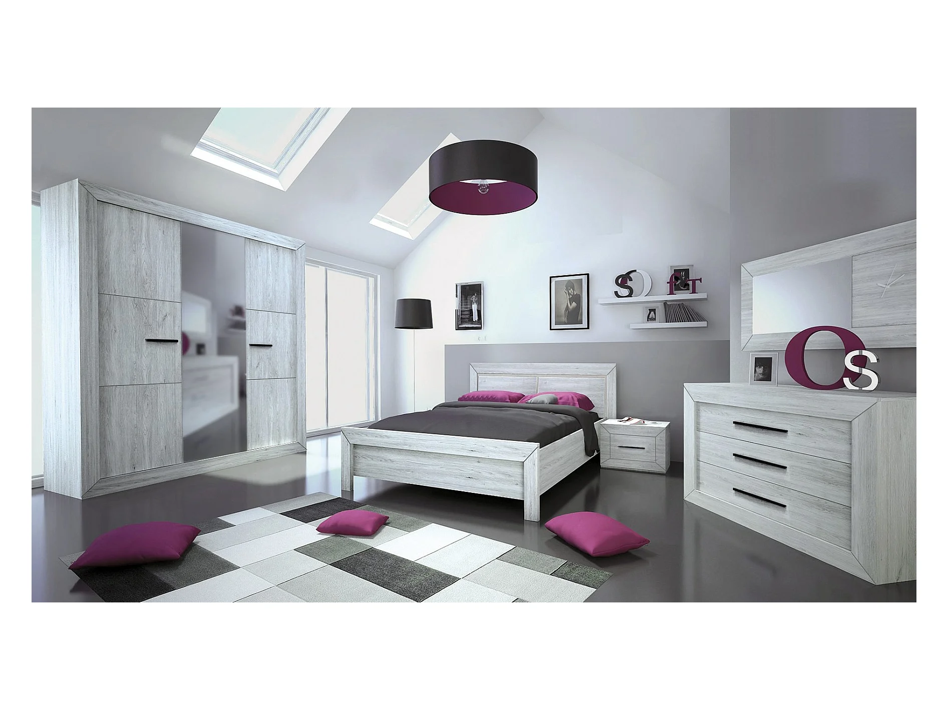 Miroir rectangulaire avec horloge bois de chêne gris Maeva