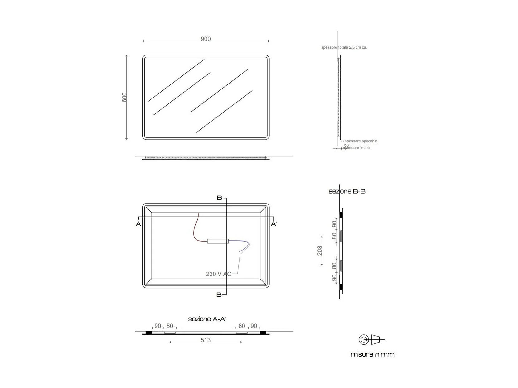 Miroir Rétroéclairé 60 X 90 Cm Angles Arrondis | Dallas