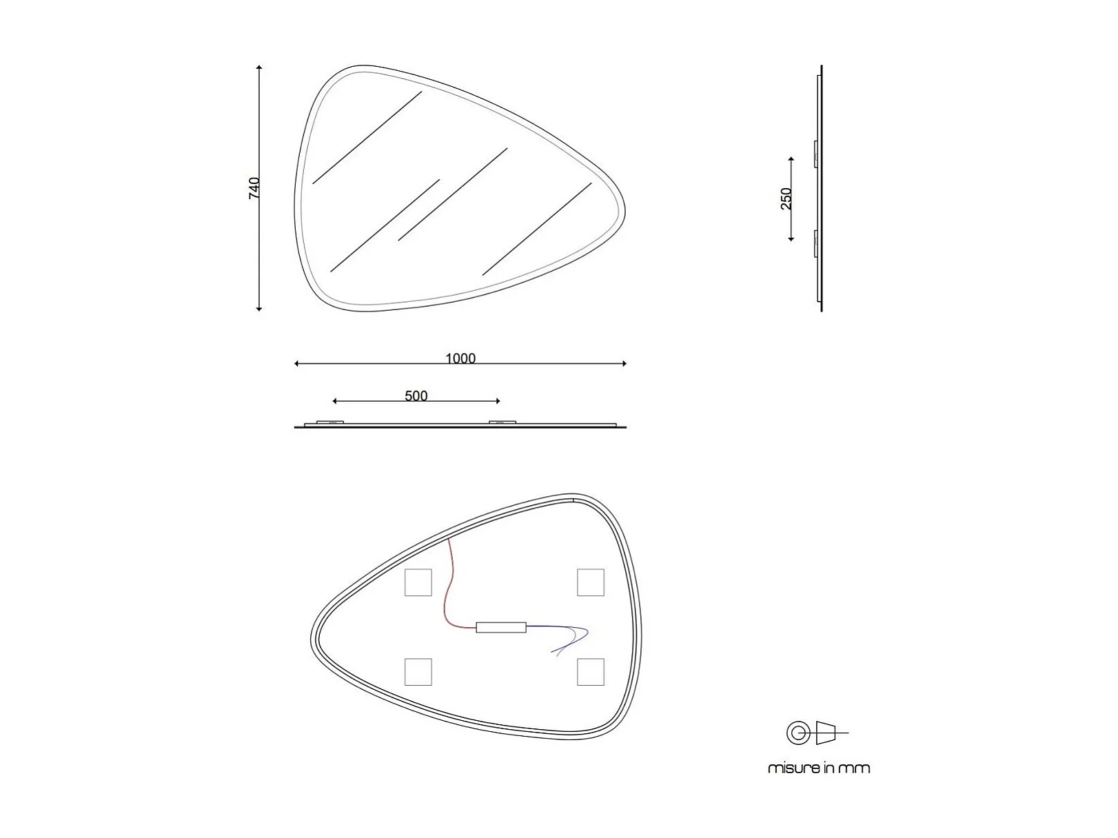 Miroir Réversible Forme De Goutte 100X75 Cm Éclairage Indirect À Led Réversible