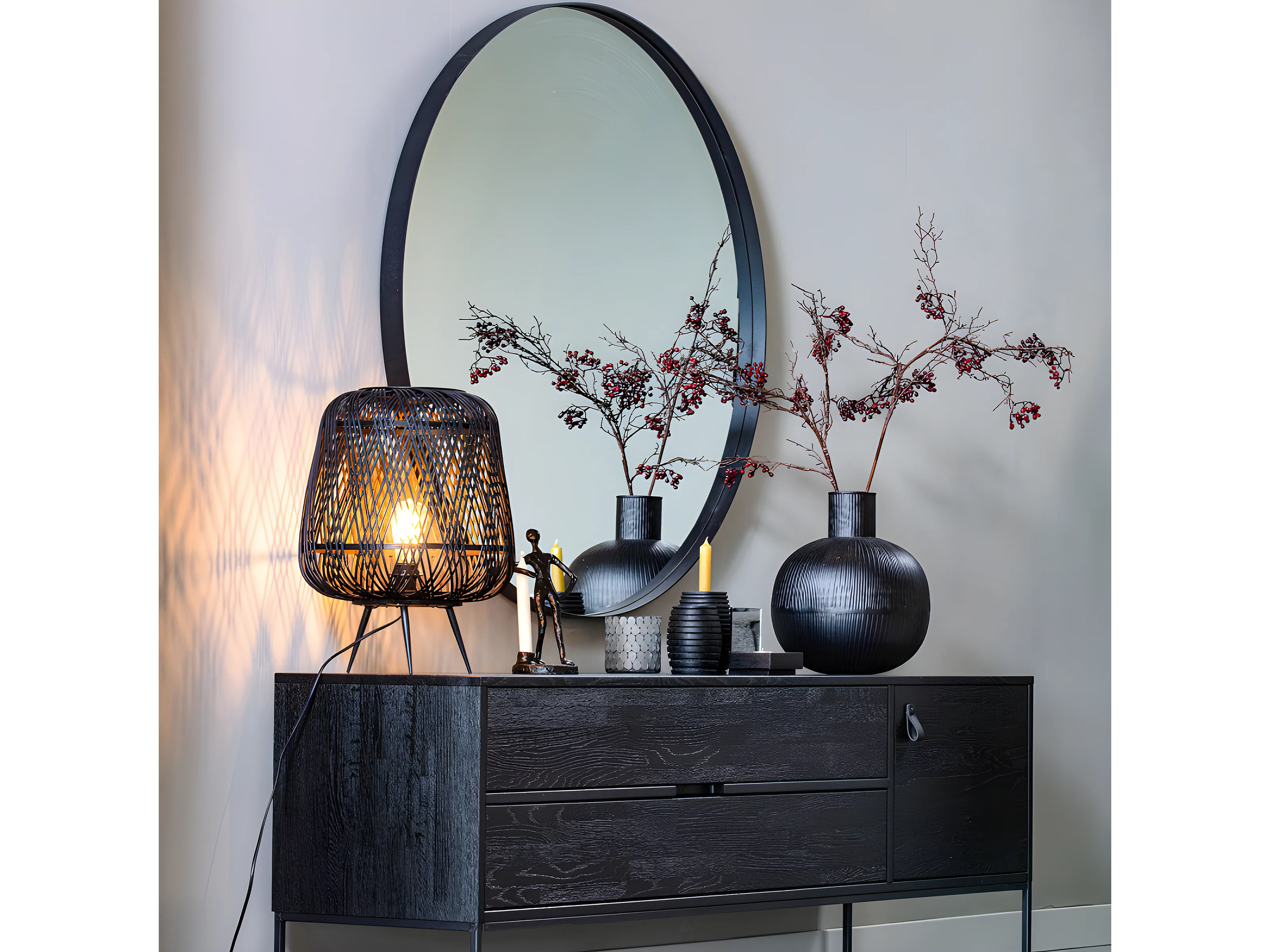 Miroir rond 115cm contour métal noir LIVOIRE