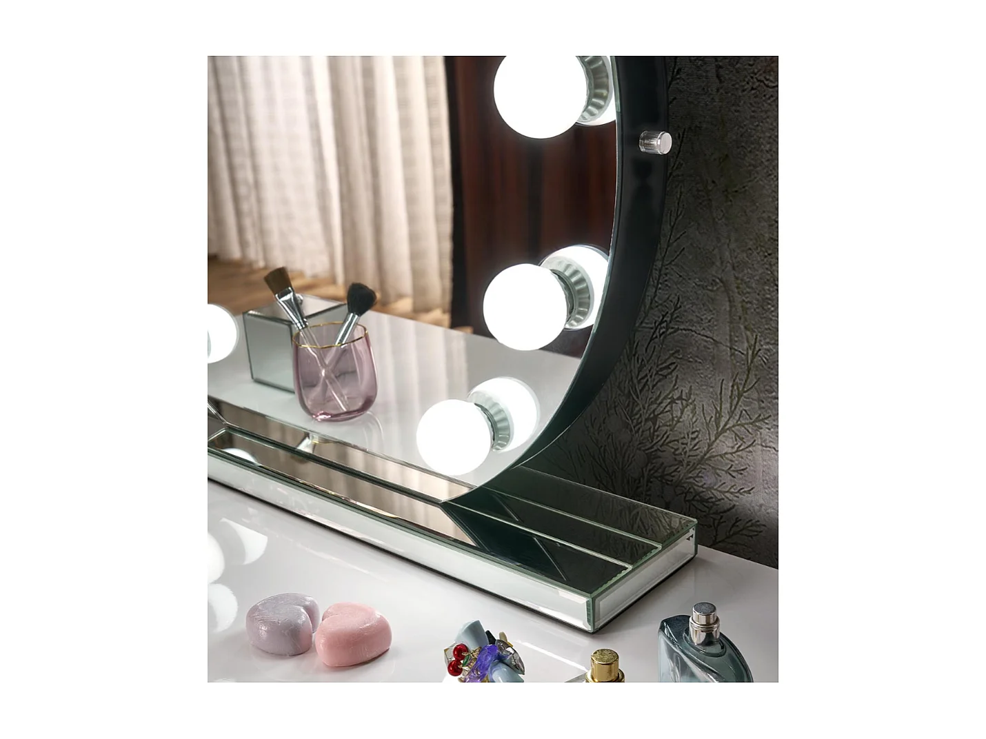 Miroir rond à poser avec ampoule led et socle Alya