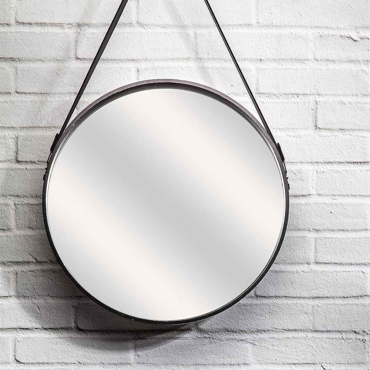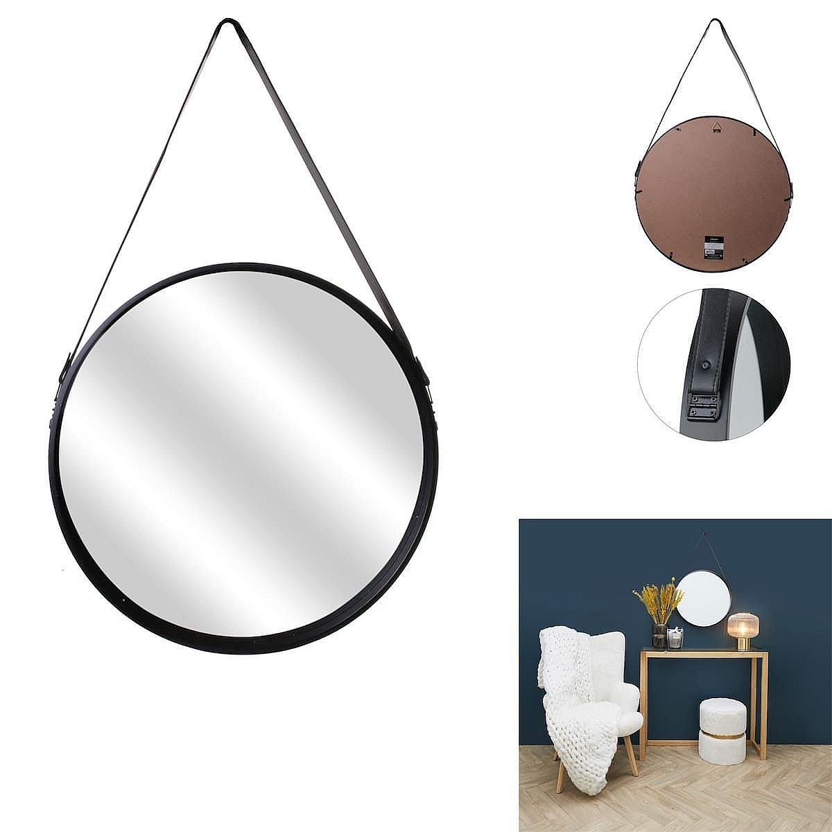 Miroir Rond avec Anse PU Noir Ø50 cm