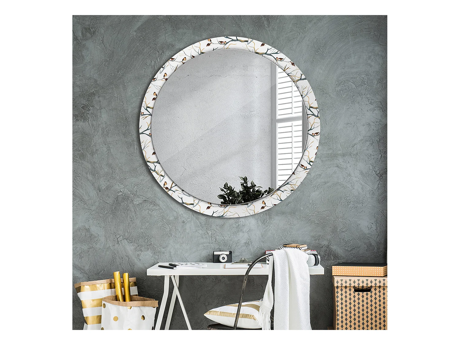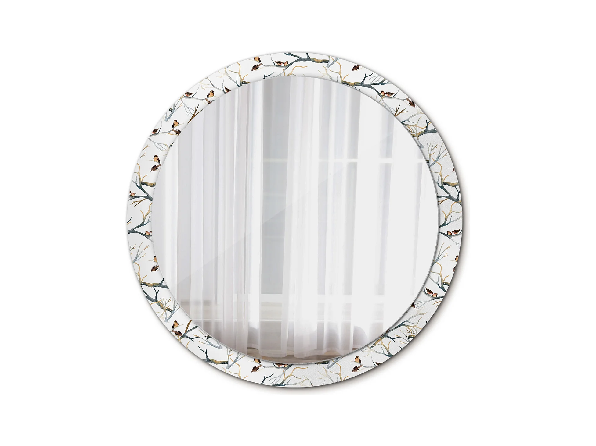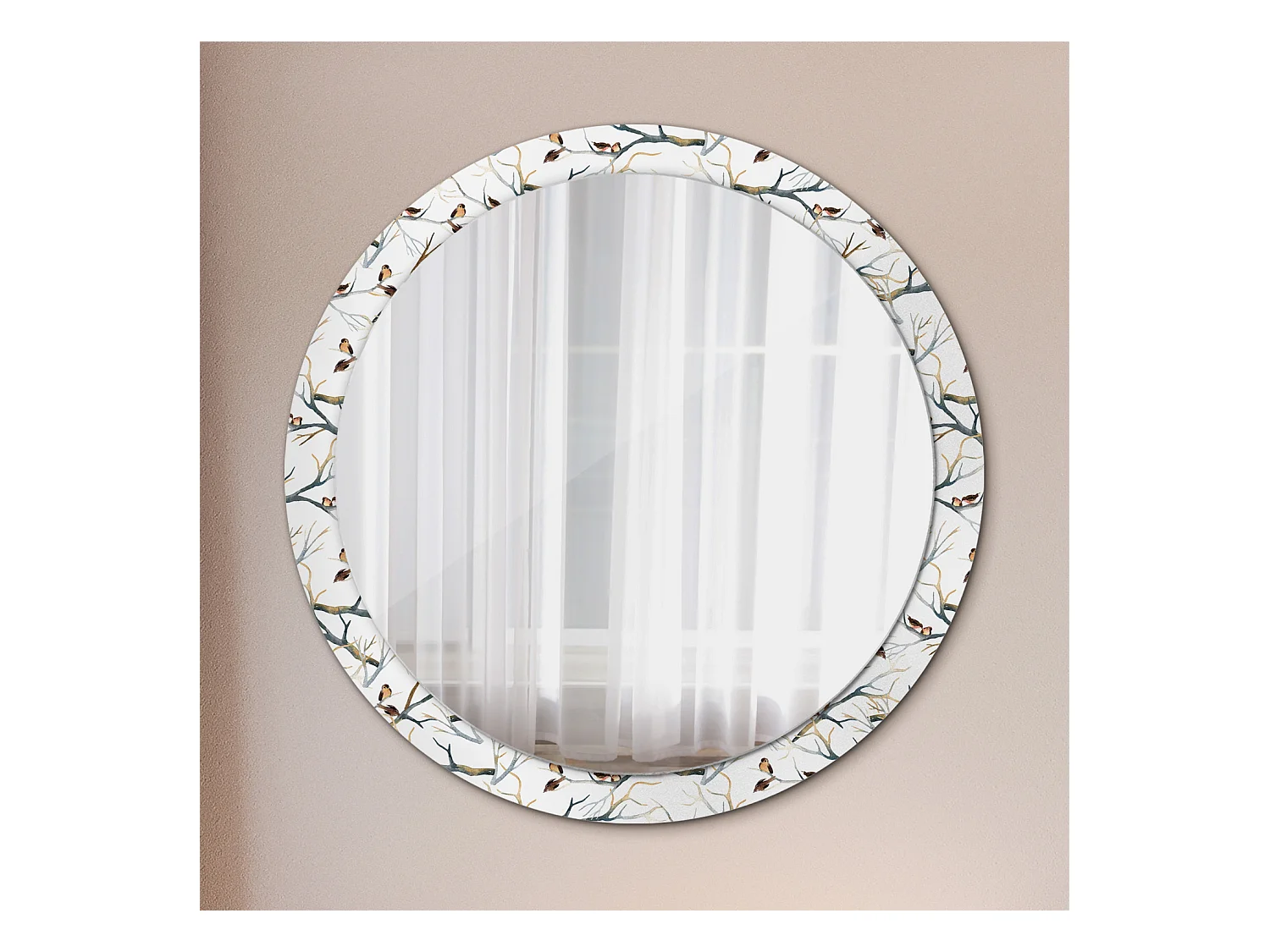 Miroir rond décoratif - branches d'oiseaux moineaux - 100 cm