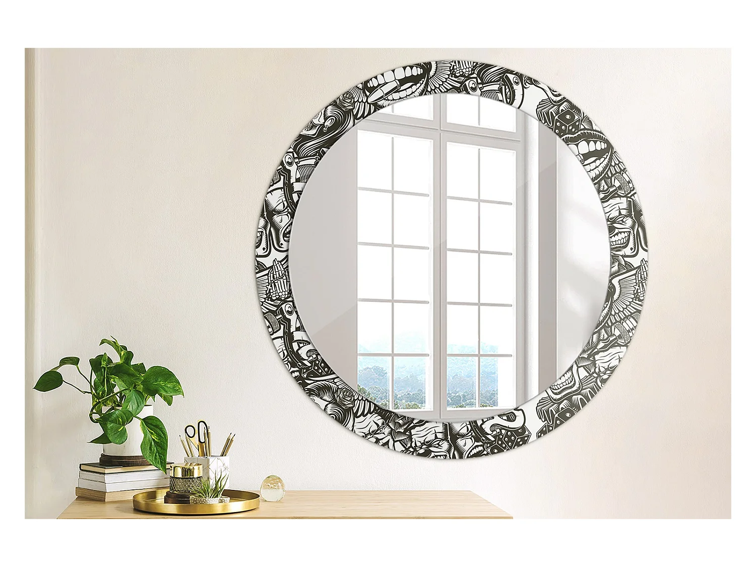 Miroir rond décoratif - Clowns graffitis - 80 cm