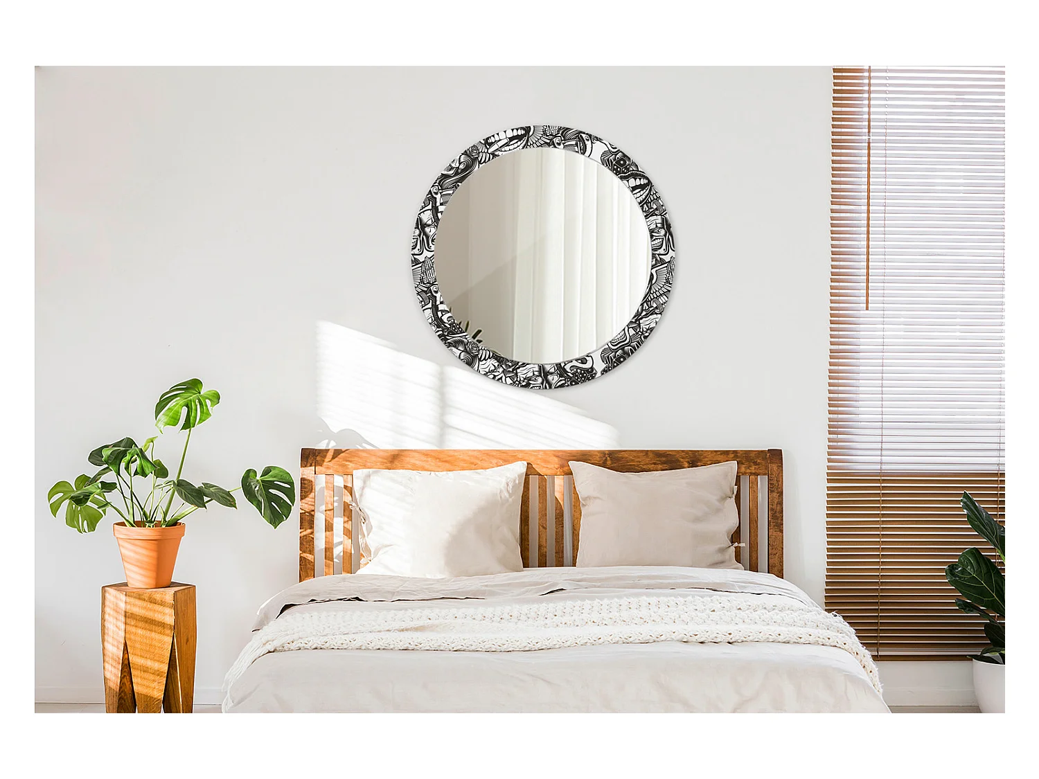Miroir rond décoratif - Motif Boho - 80 cm