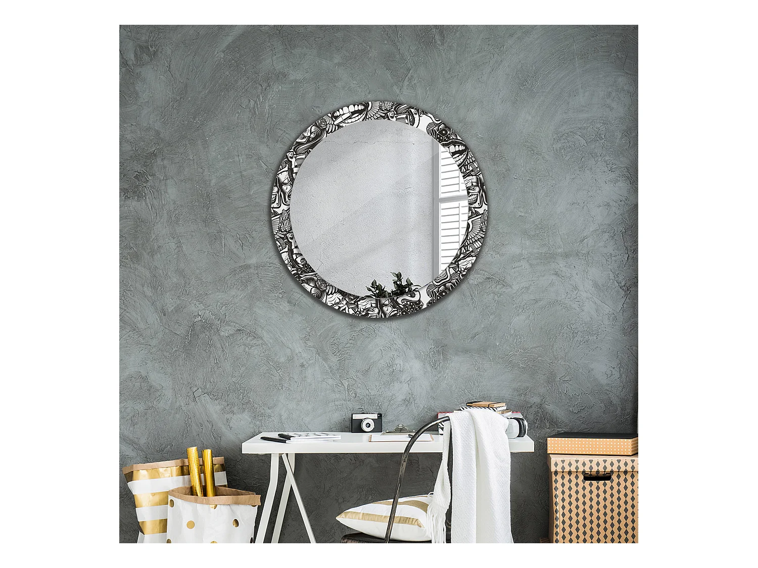 Miroir rond décoratif - Motif Loft - 80 cm