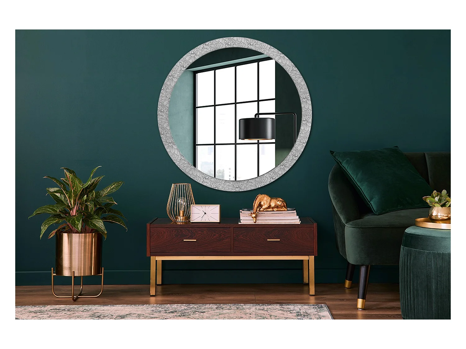 Miroir rond décoratif - Fleurs de Lotus - 100 cm
