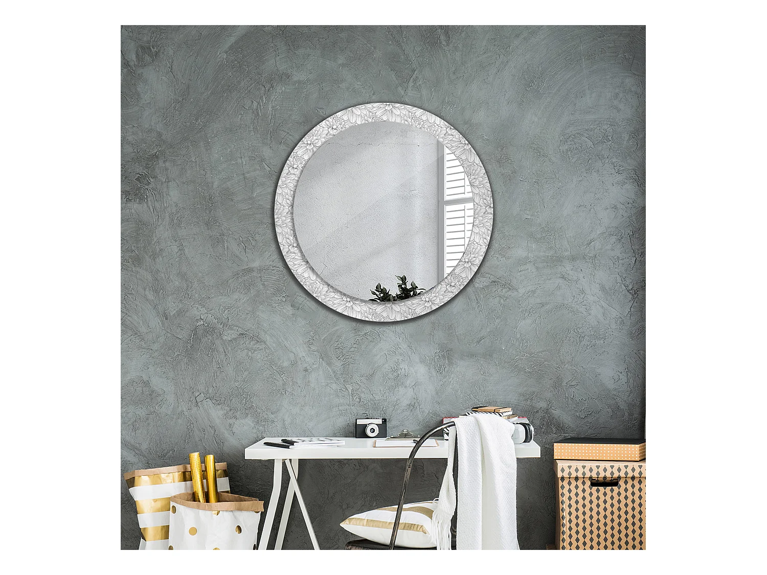 Miroir rond décoratif - Béton gris - 80 cm