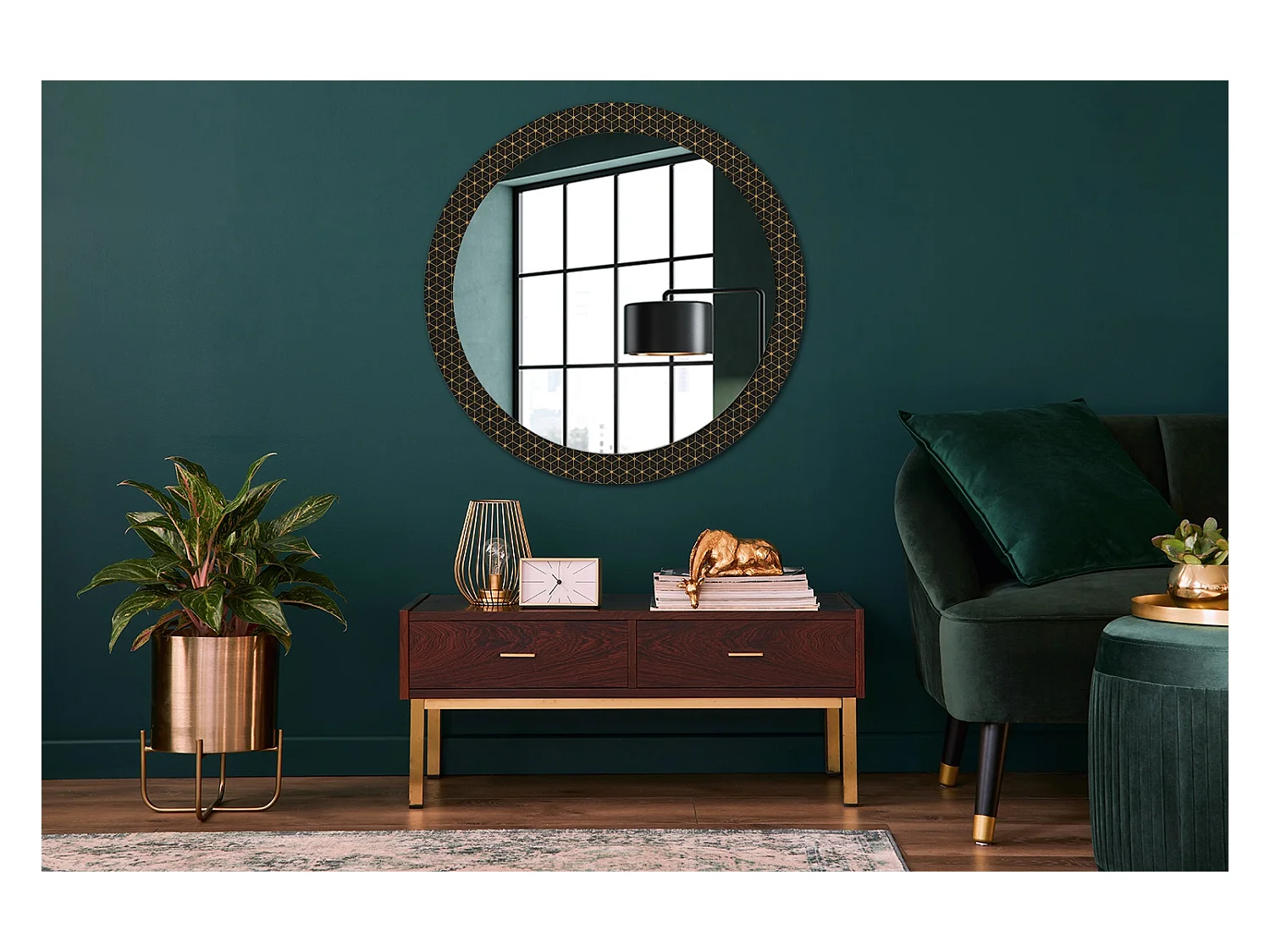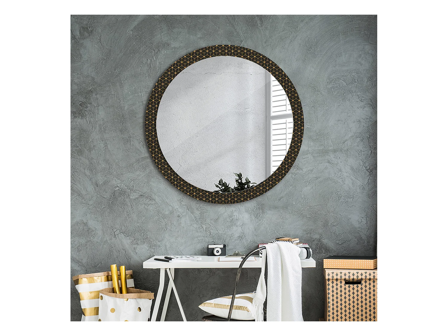 Miroir rond décoratif - Géométrie hexagonale - 90 cm