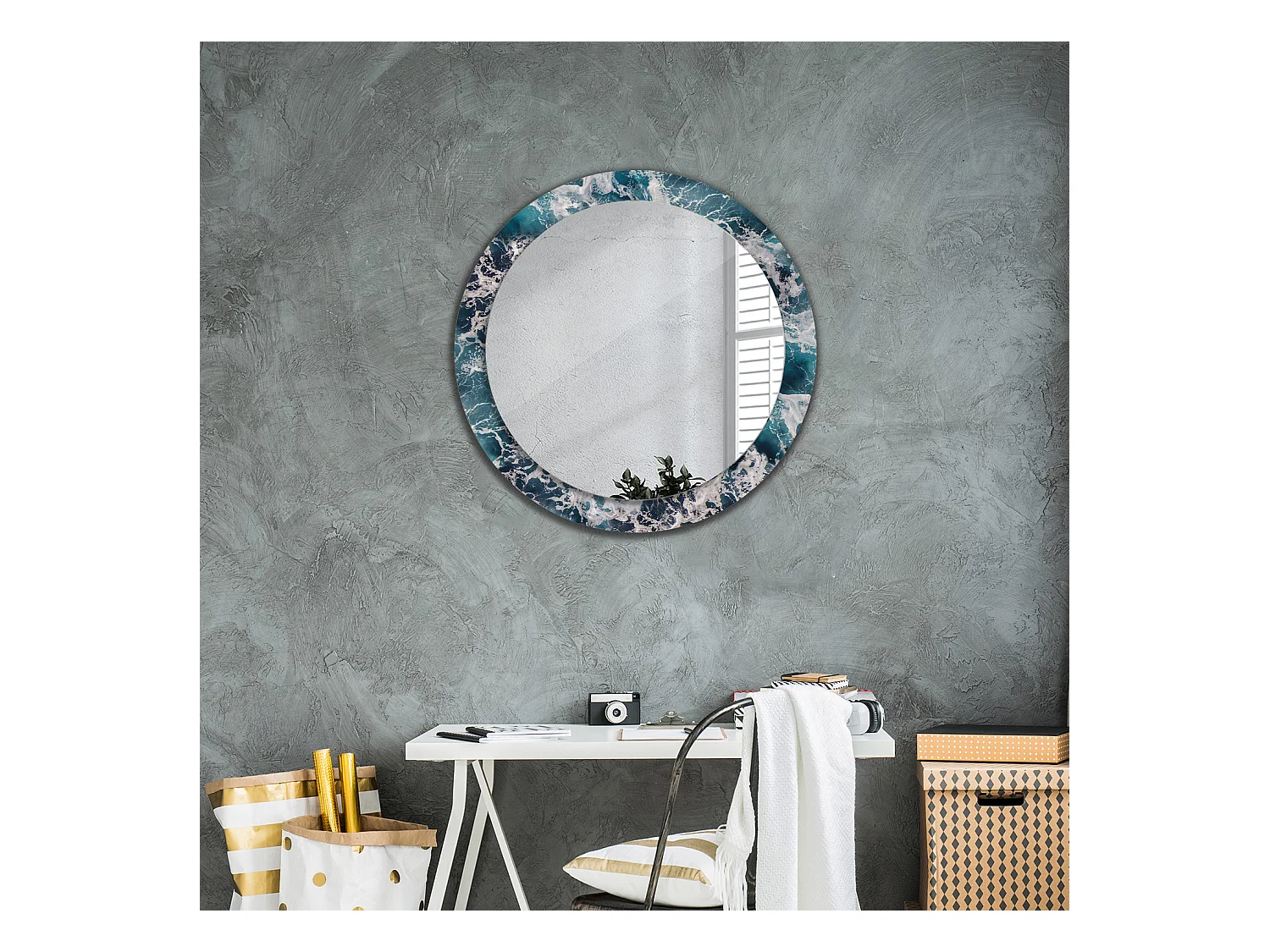 Miroir rond décoratif - Bleu abstrait - 80 cm