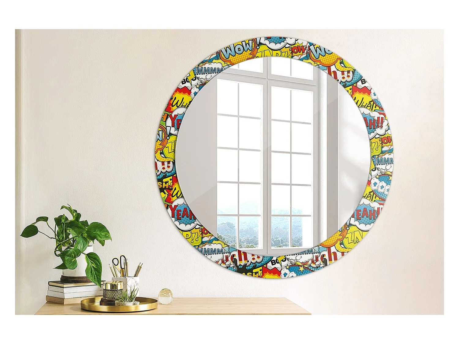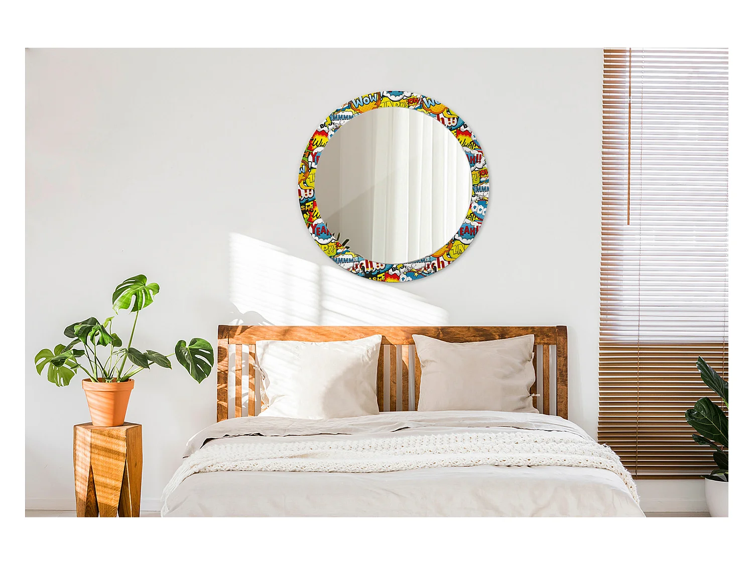 Miroir rond décoratif - Motif style bande dessinée - 80 cm