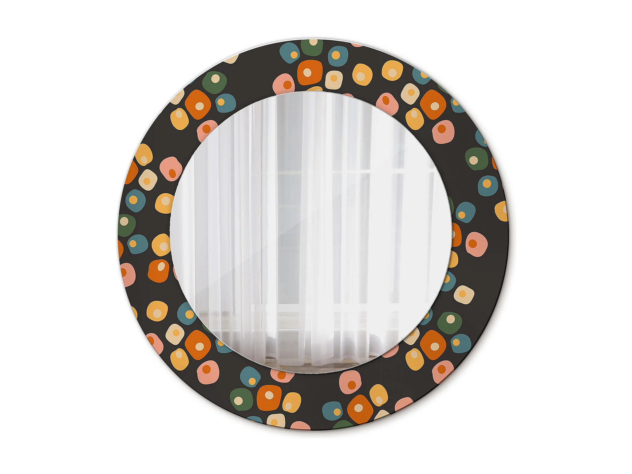 Miroir rond décoratif - Pois fleuris - 50 cm