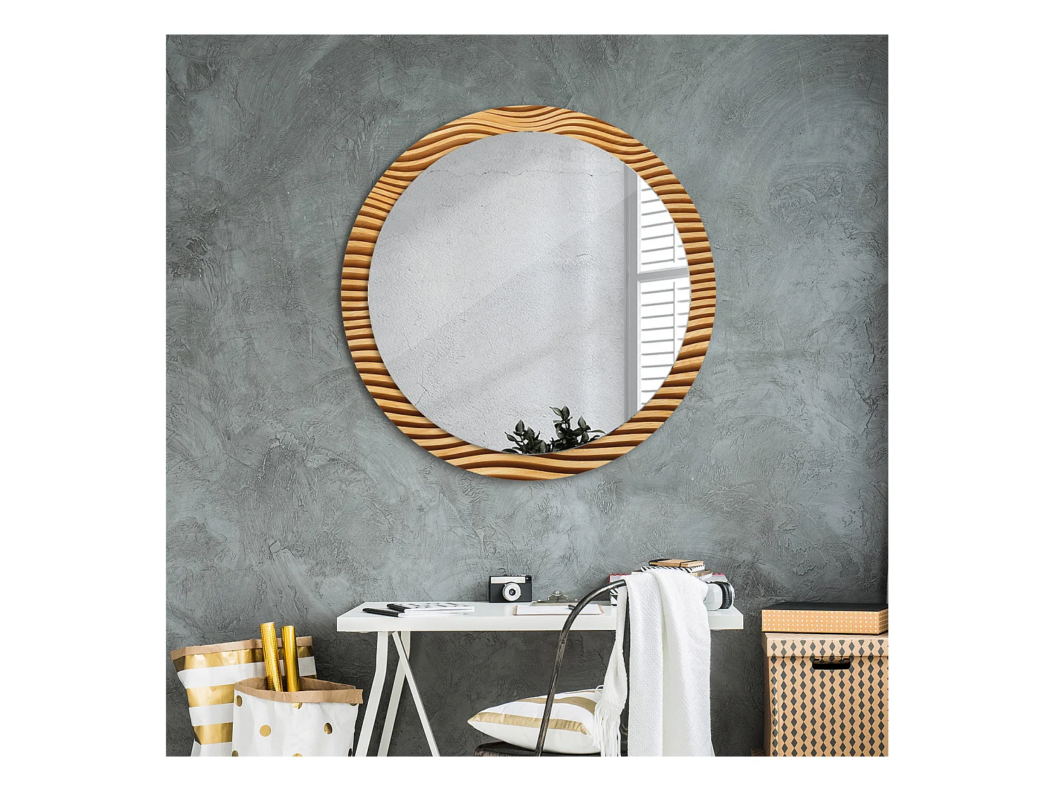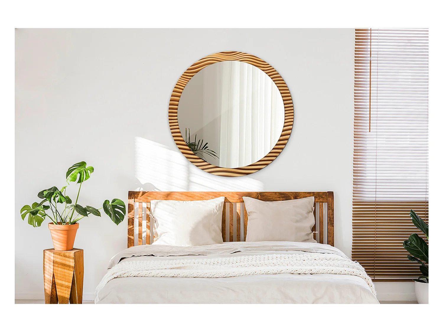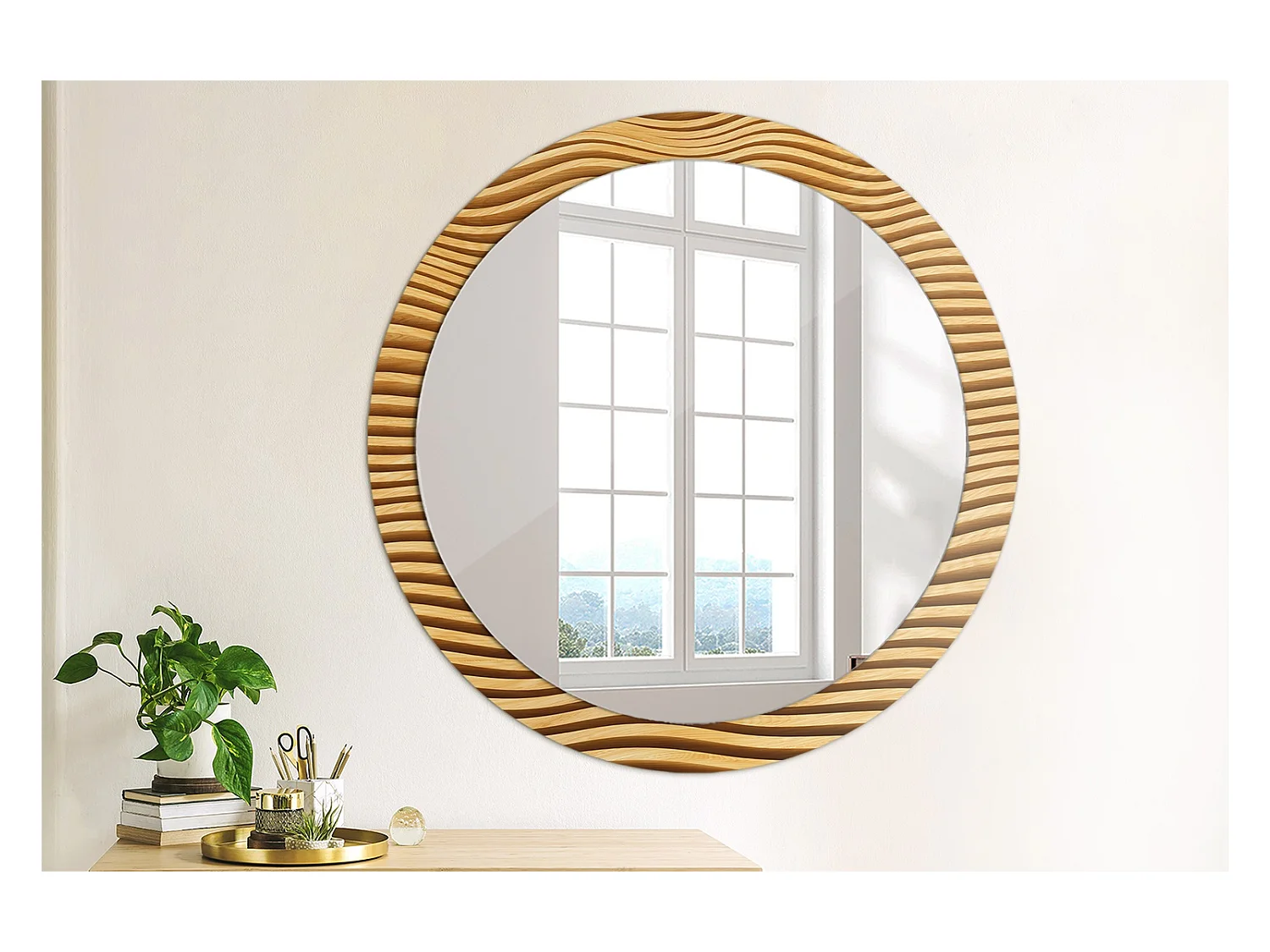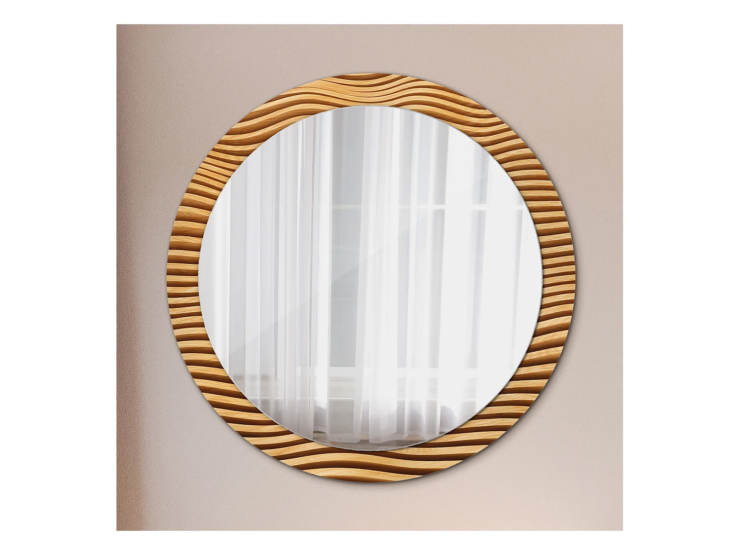 Miroir rond décoratif - Vague en bois - 90 cm