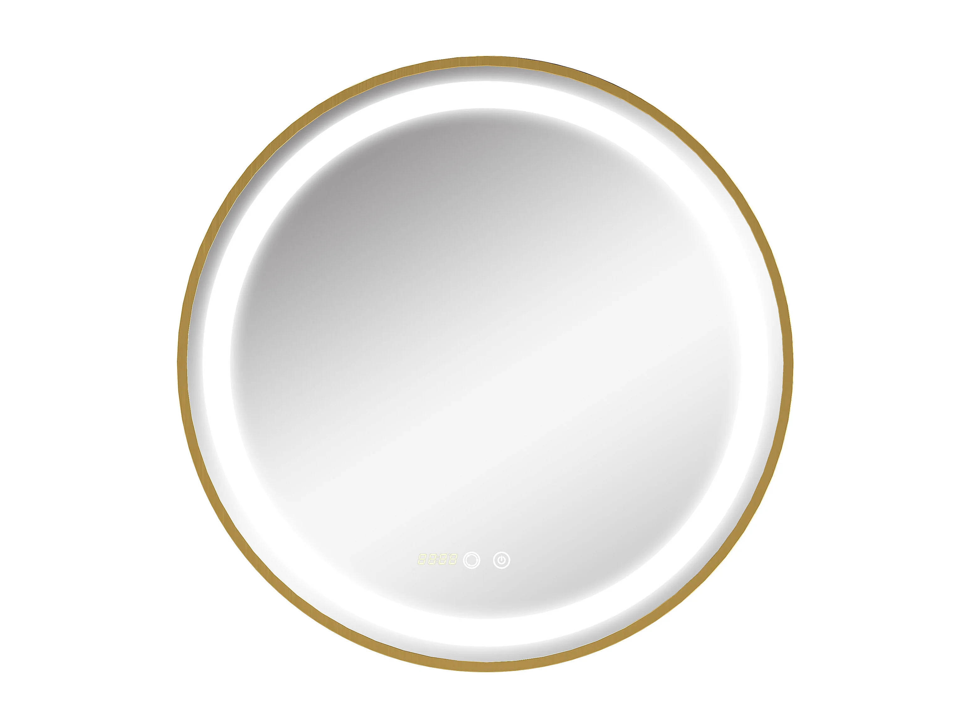 Miroir rond LED tactile salle de bain dia. 60 cm - 3 couleurs température, affichage heure - alu doré