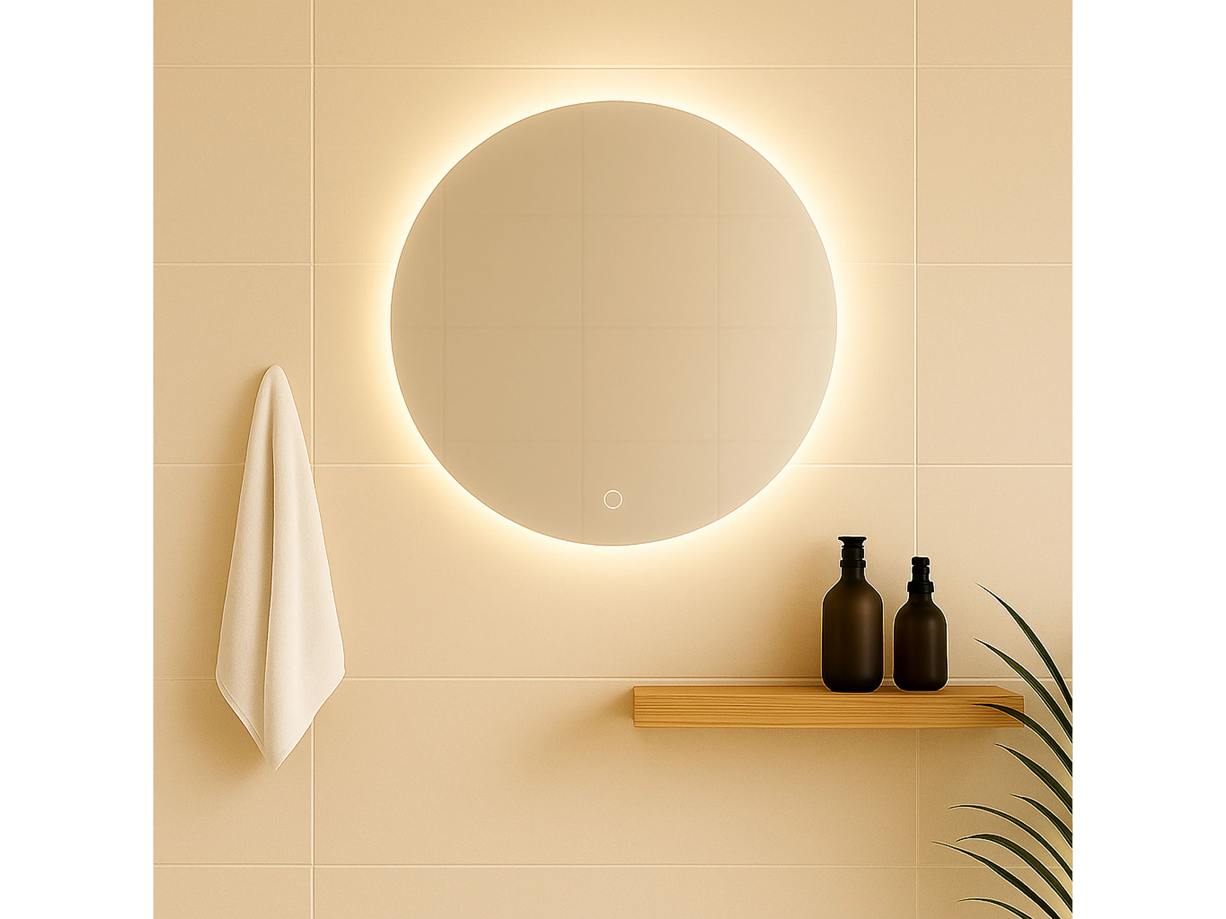 Miroir Salle de Bain TORINO Gris Ø80cm - T° Led Variable Rétro-éclairé & Frontal - Tactiles On/Off & Anti-Buée - LEDIMEX