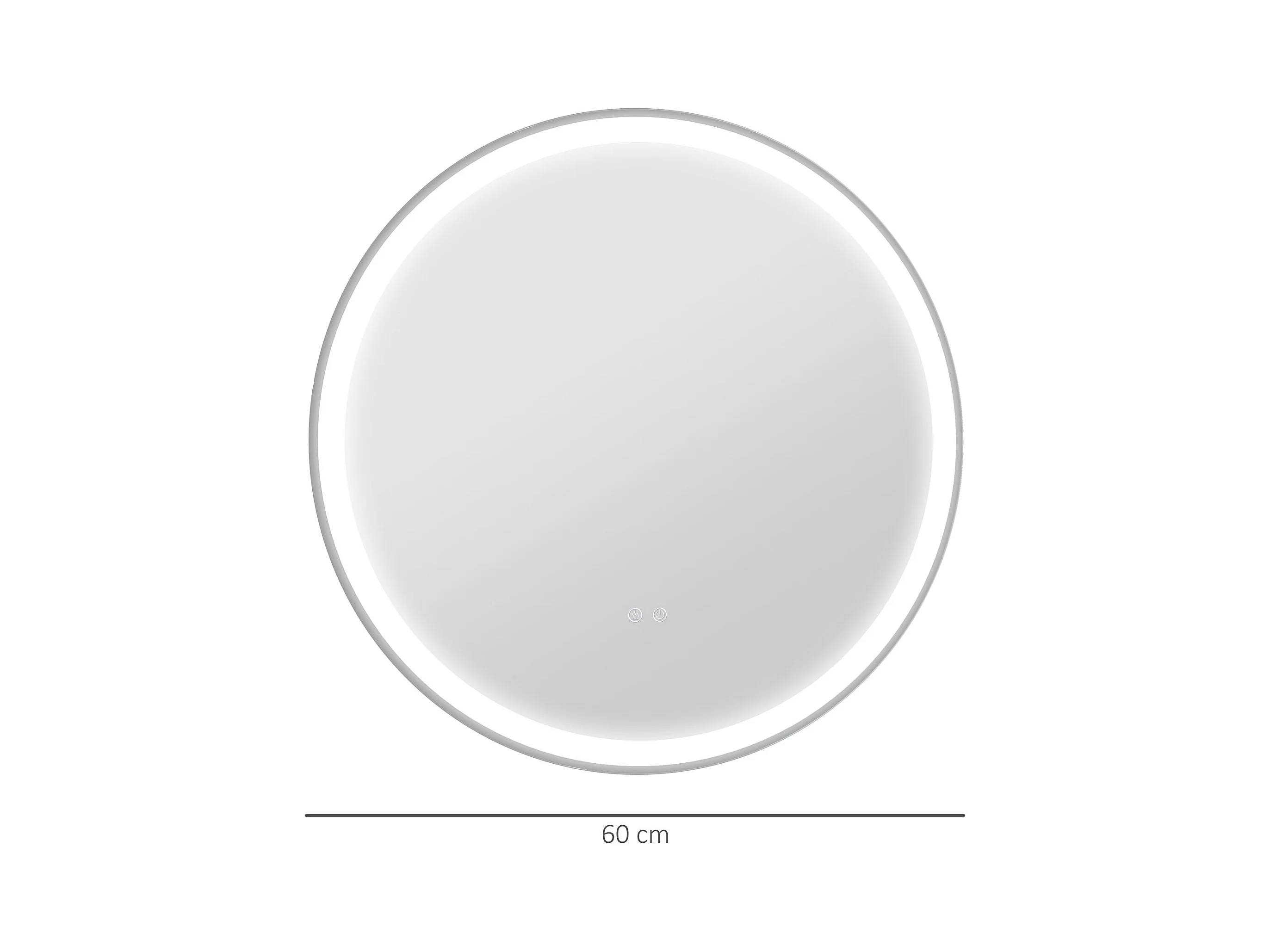 Miroir rond lumineux LED de salle de bain 29 W Ø 60 cm tactile antibuée blanc argent