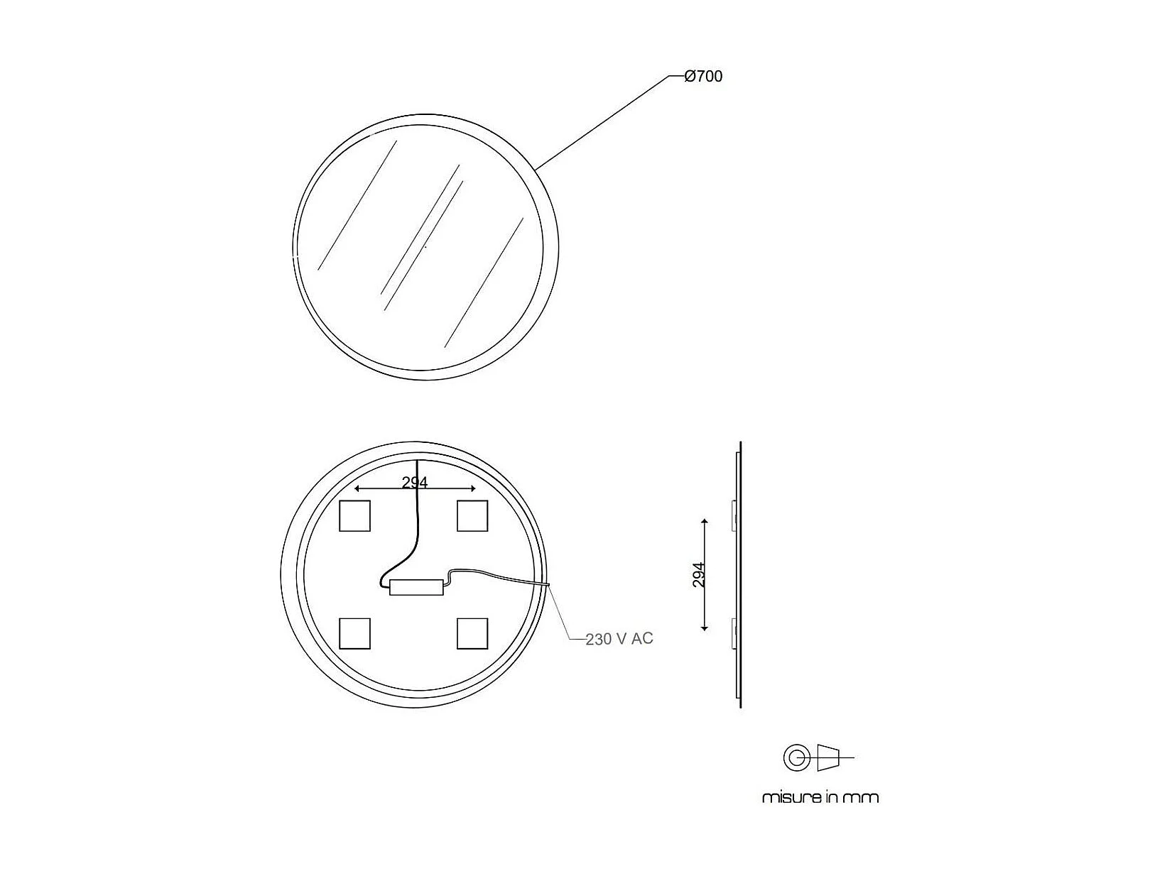 Miroir Rond Pour Salle De Bain Avec Diamètre Cm 70 Retroéclairé À Led Moderne
