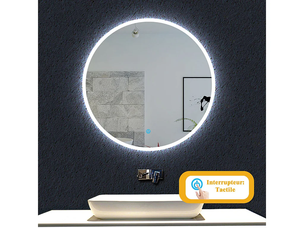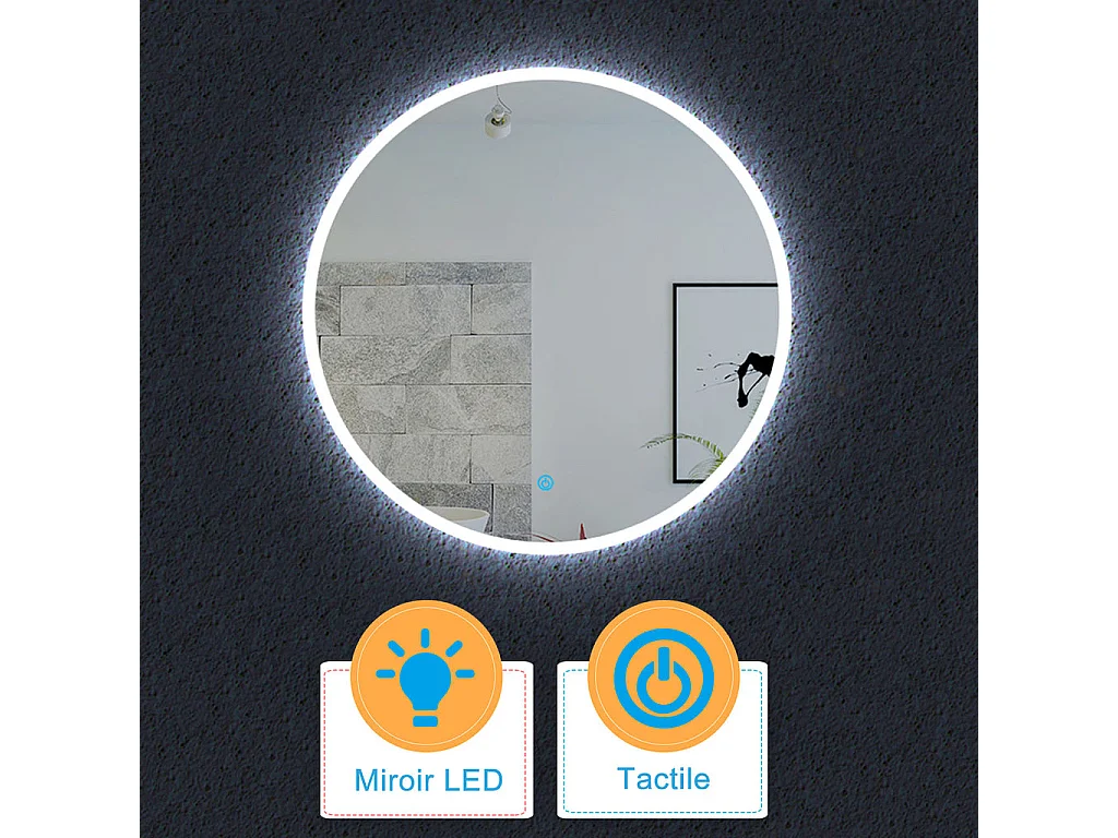 Miroir Rond Salle de LED Bain 60cm Dimmable + Fonction mémoire
