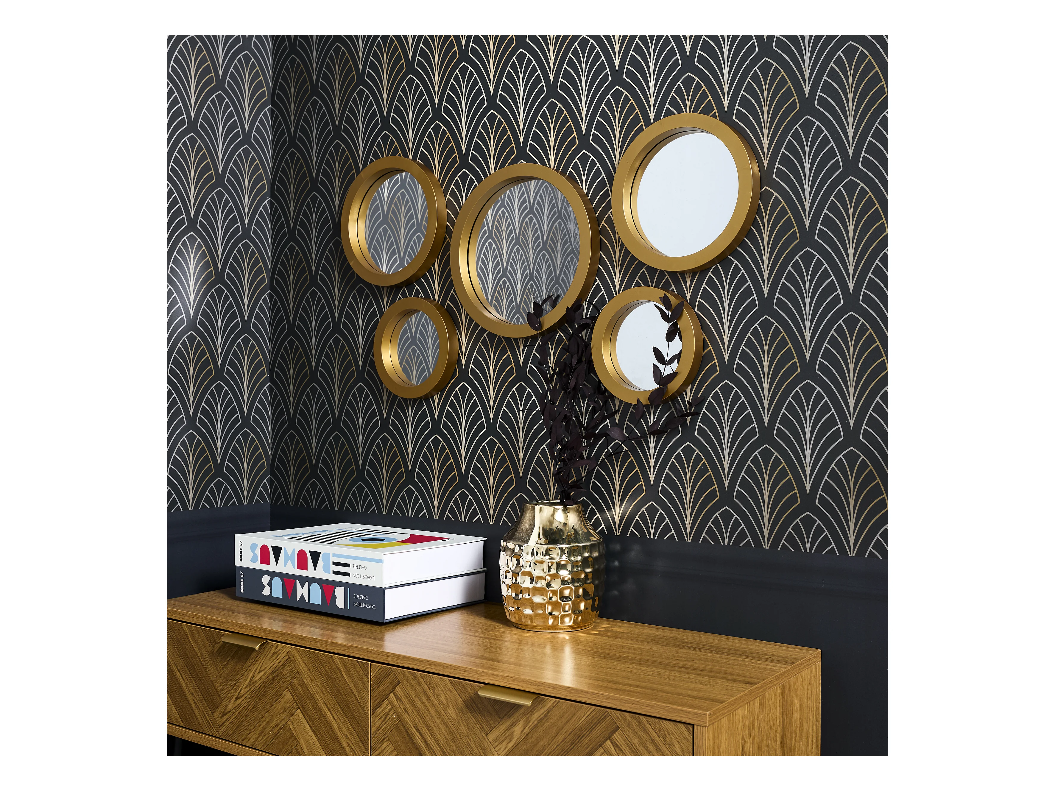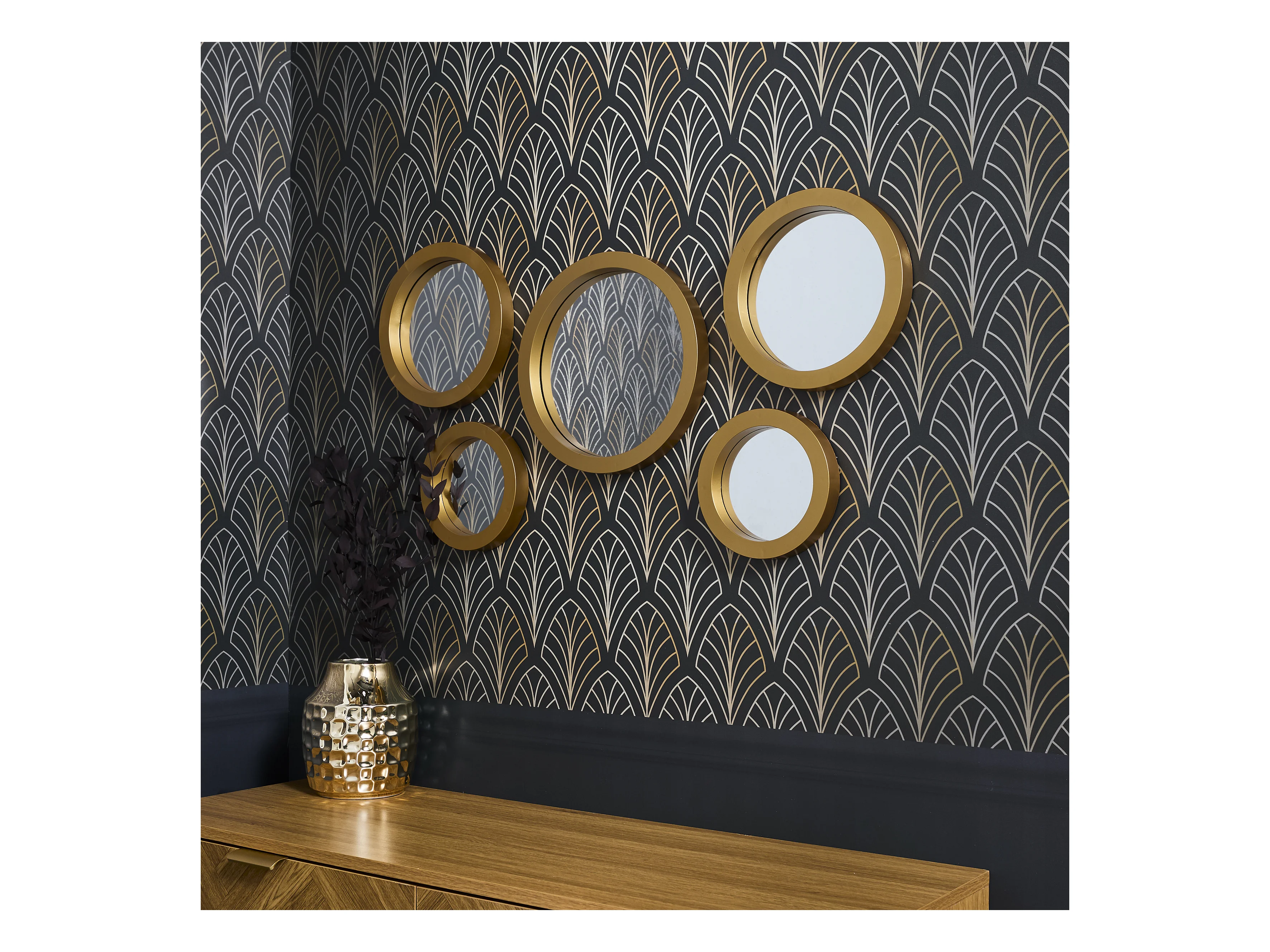 5 miroirs décoratifs muraux ronds avec encadrement doré