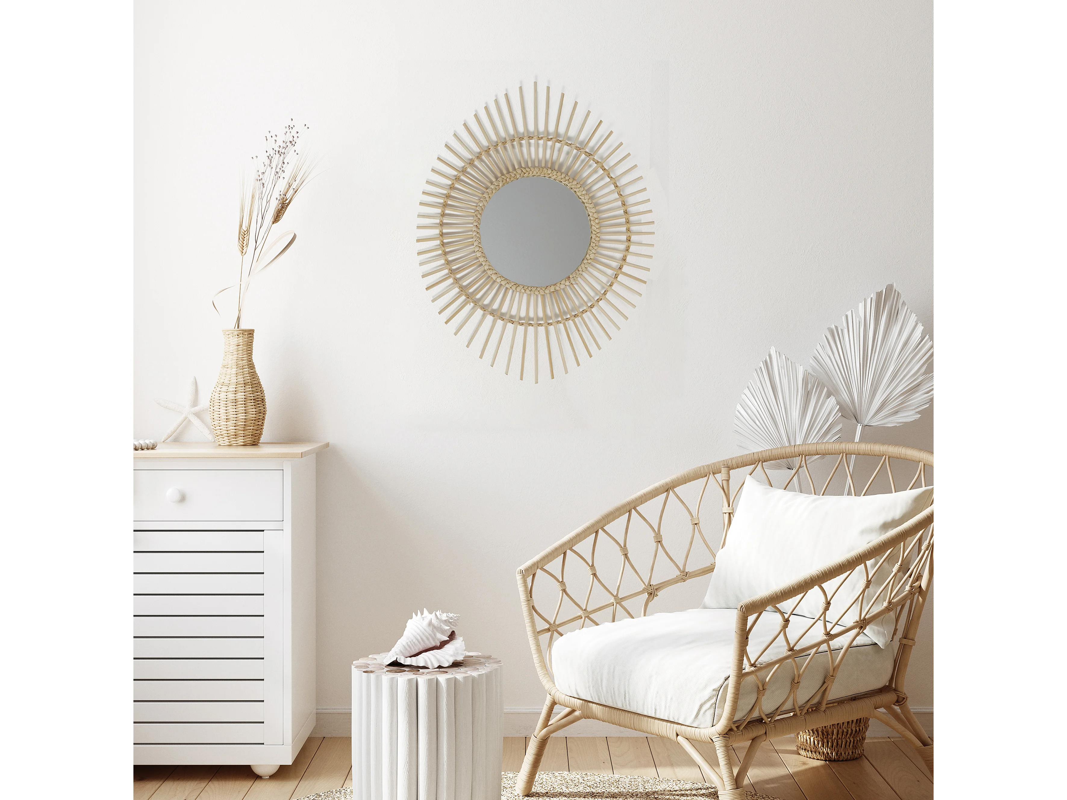 Miroir mural en Rotin et Raphia 44 X 31 cm