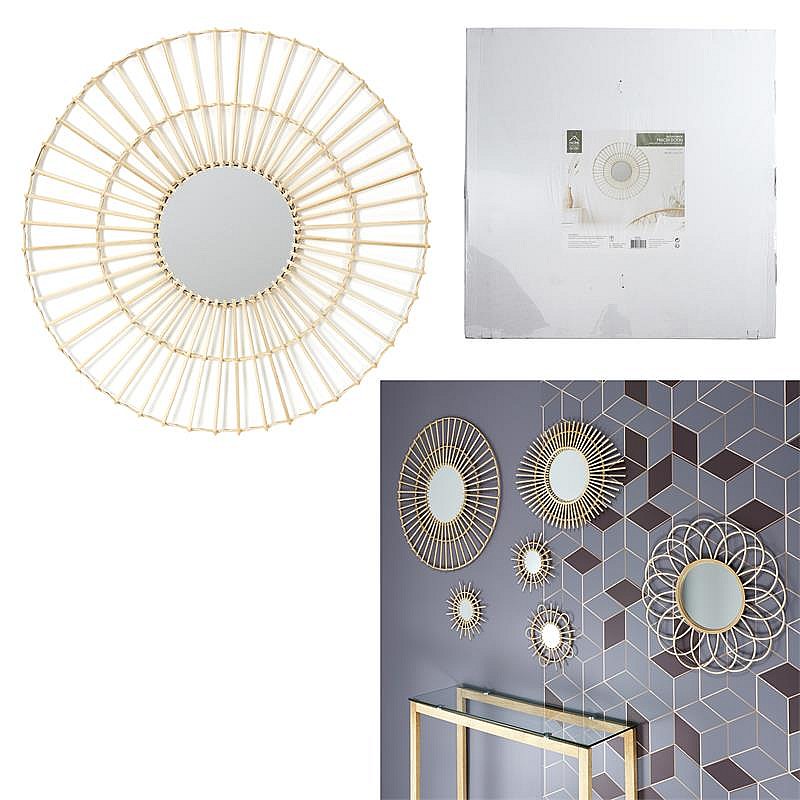 Miroir Rotin Rond 75cm Beige