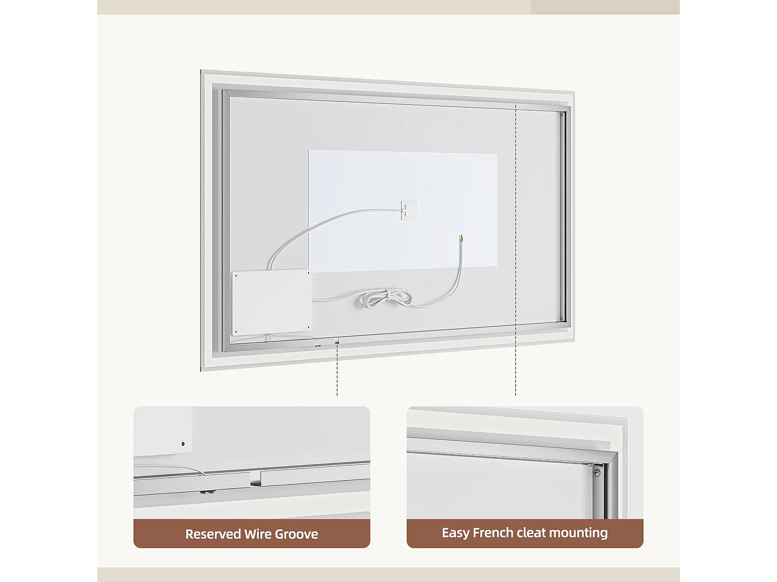 Miroir Salle de Bain 60x80cm LED, Anti-buée, 20W, Interrupteur Tactile, Anti-déflagrant, Mémoire, IP44 Étanche