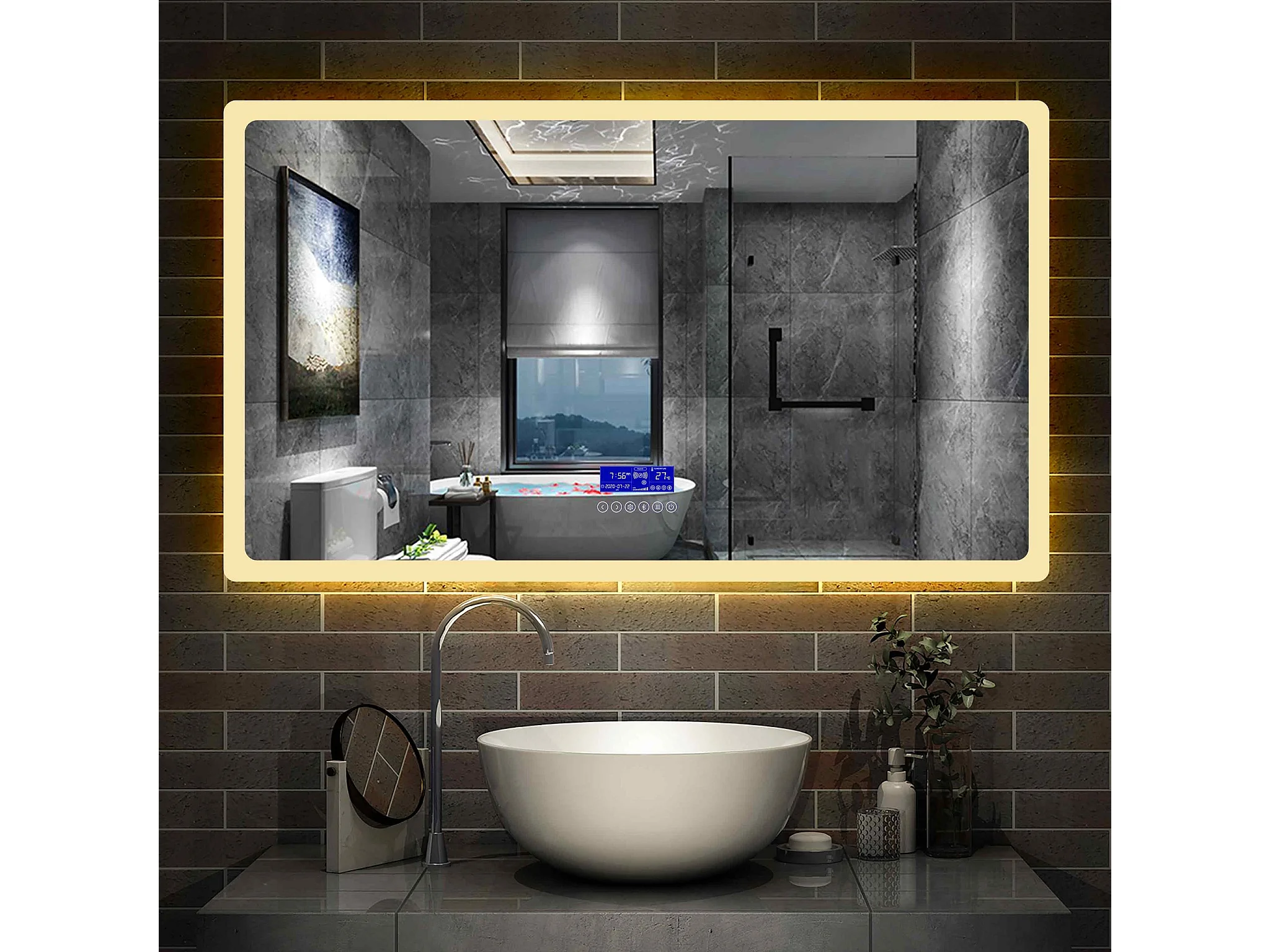 Miroir Salle de Bain Anti-buée LED 100 x 60 cm de 3 Couleurs avec Bluetooth, Horloge Aica