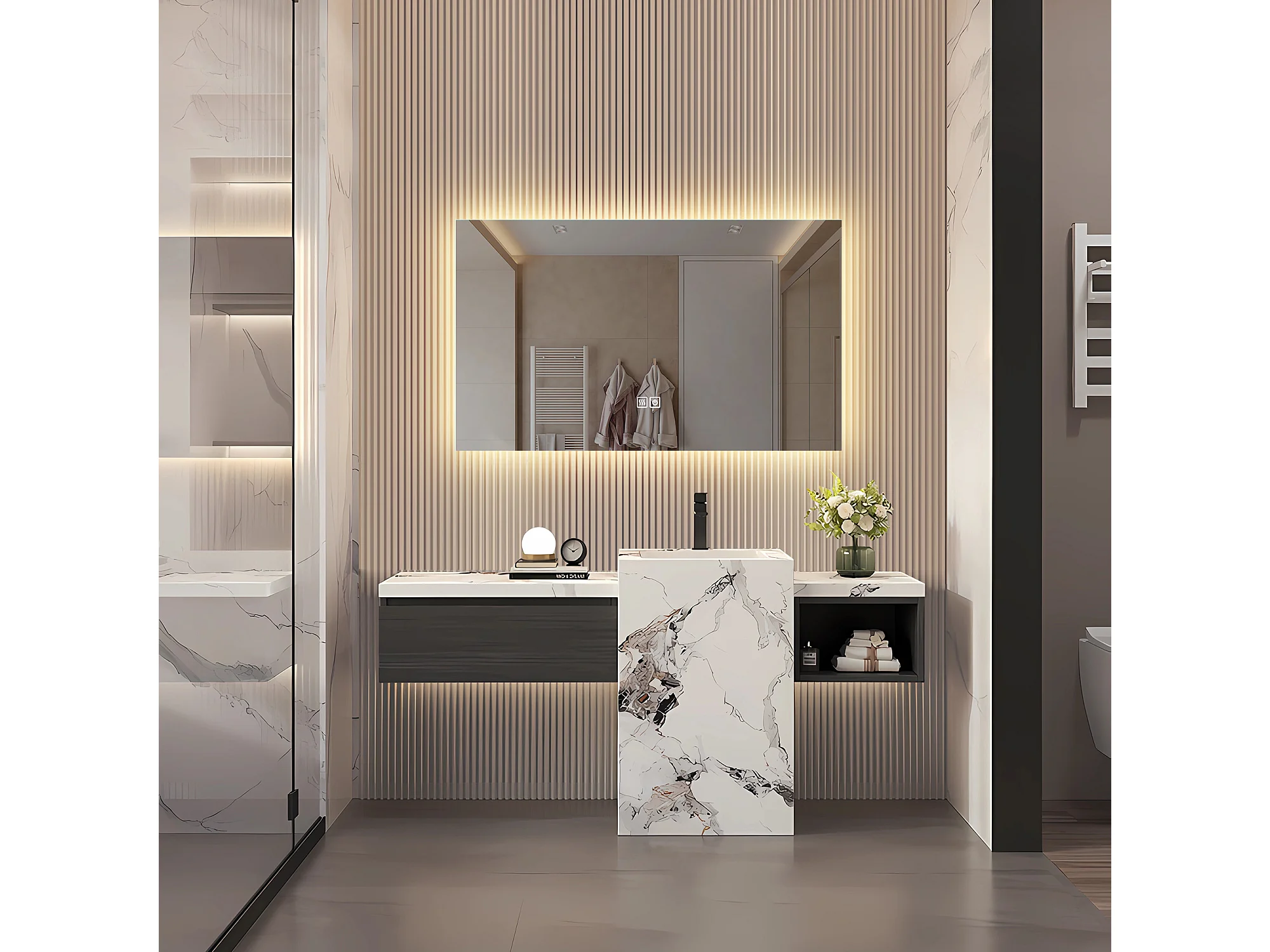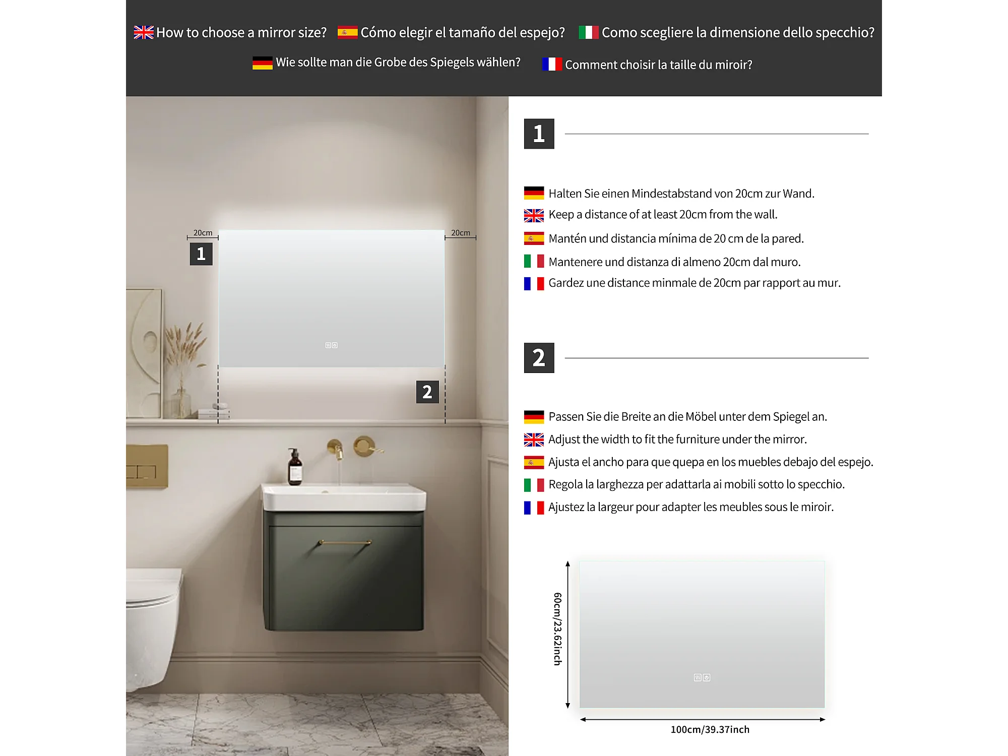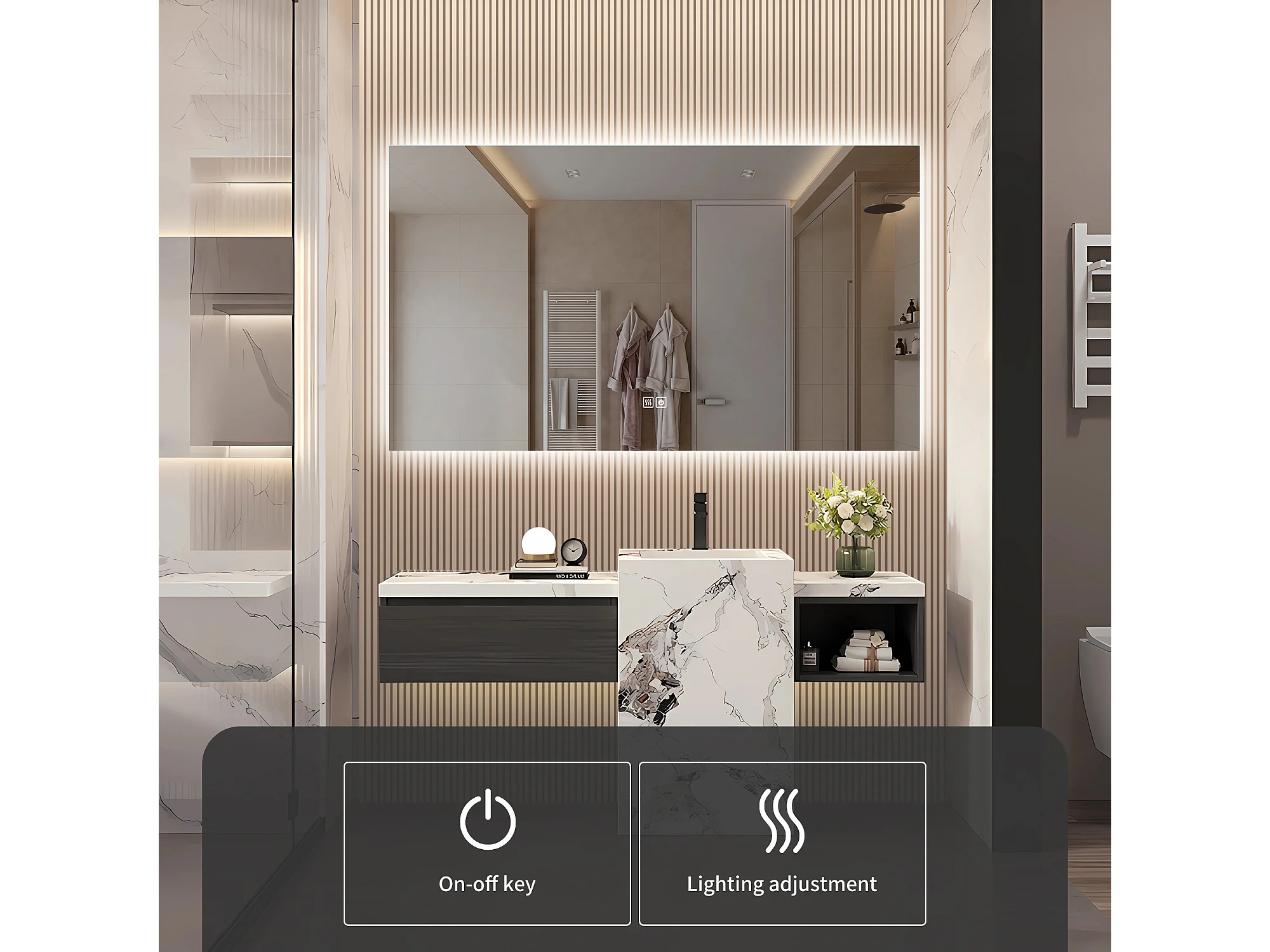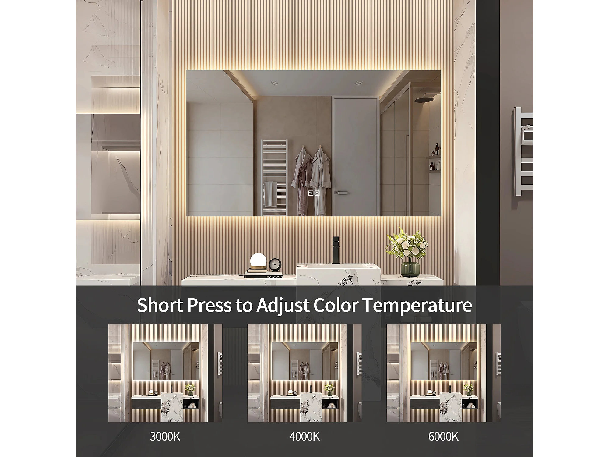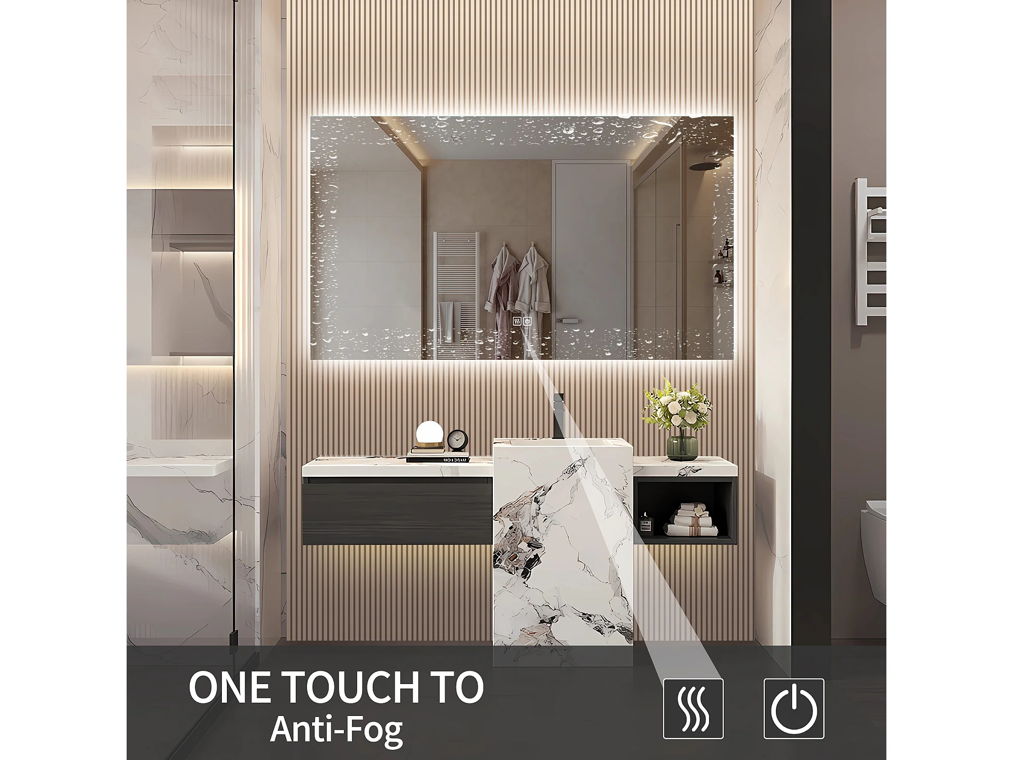 Miroir Salle de Bain avec Éclairage - 60 x 100 cm - Miroir LED Salle de Bain - avec Anti-buée et 3 Couleur Changeable