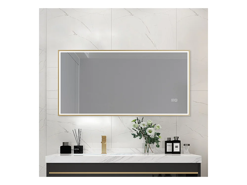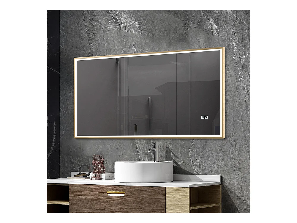 Miroir salle de bain LED 110x60cm anti buée avec cadre doré LB-126080G