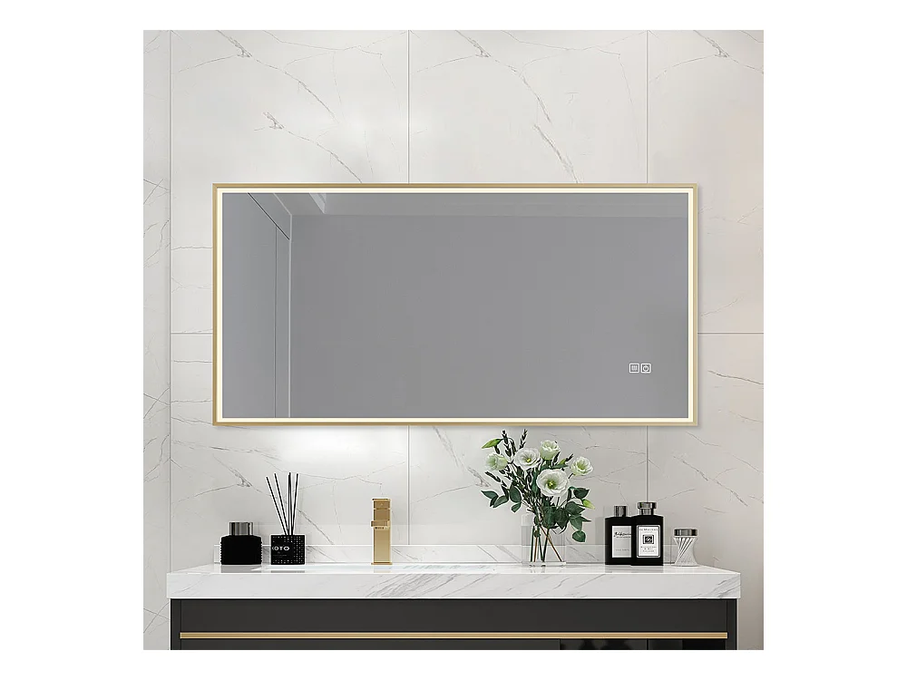 Miroir salle de bain LED 90x60cm anti buée avec cadre doré LB-126080G