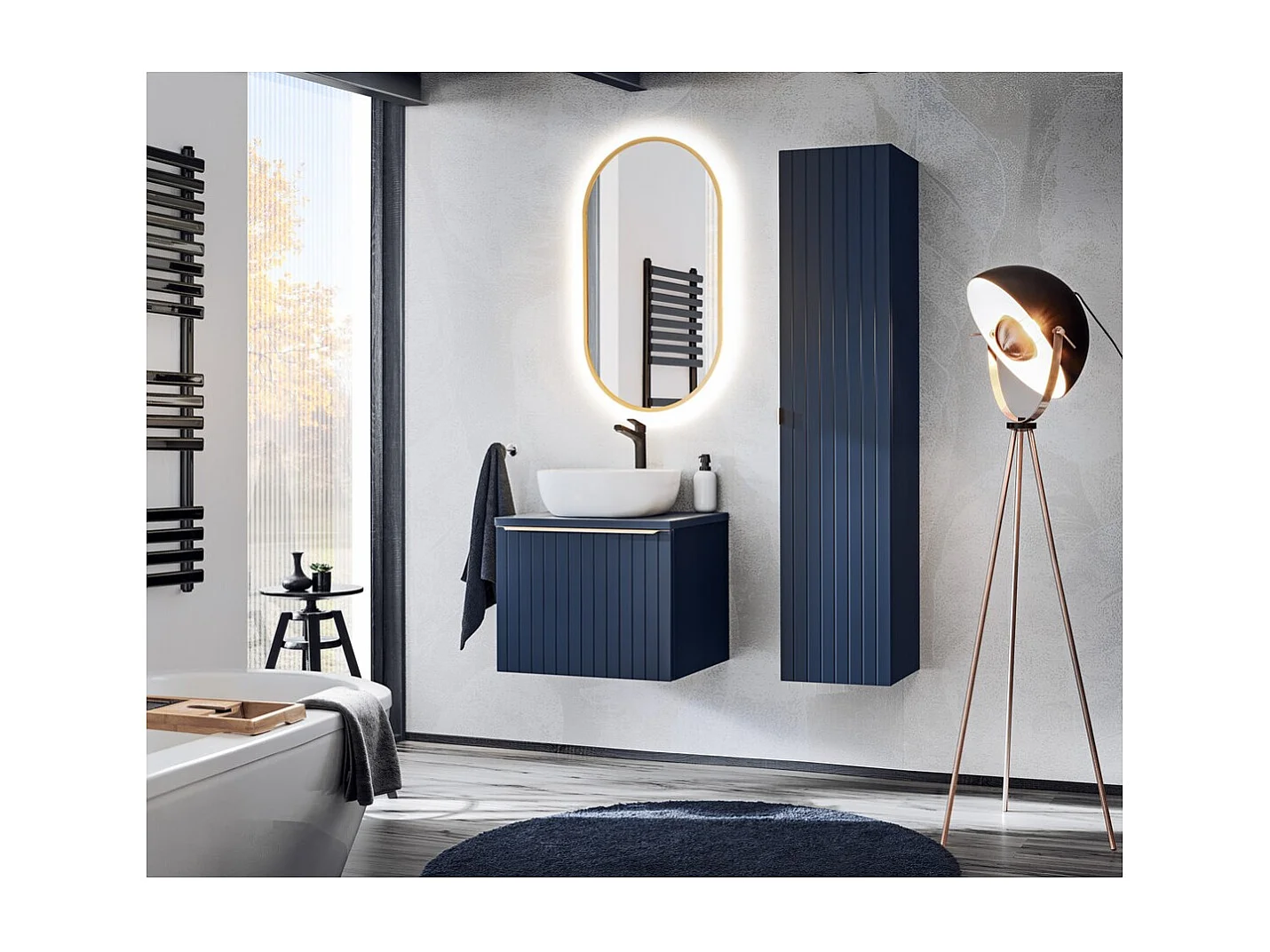 Miroir salle de bain LED doré ovale 90x50 cm ultra fin