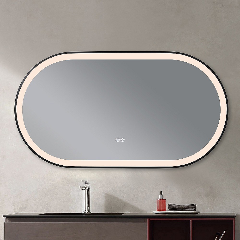 Miroir salle de bain LED ovale 120x60cm anti buée avec cadre en aluminium noir- LuxuryBain