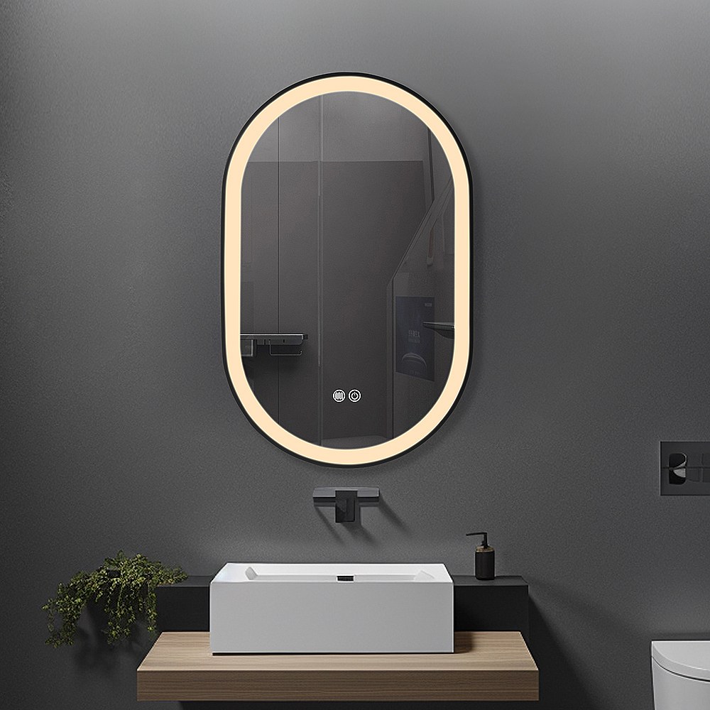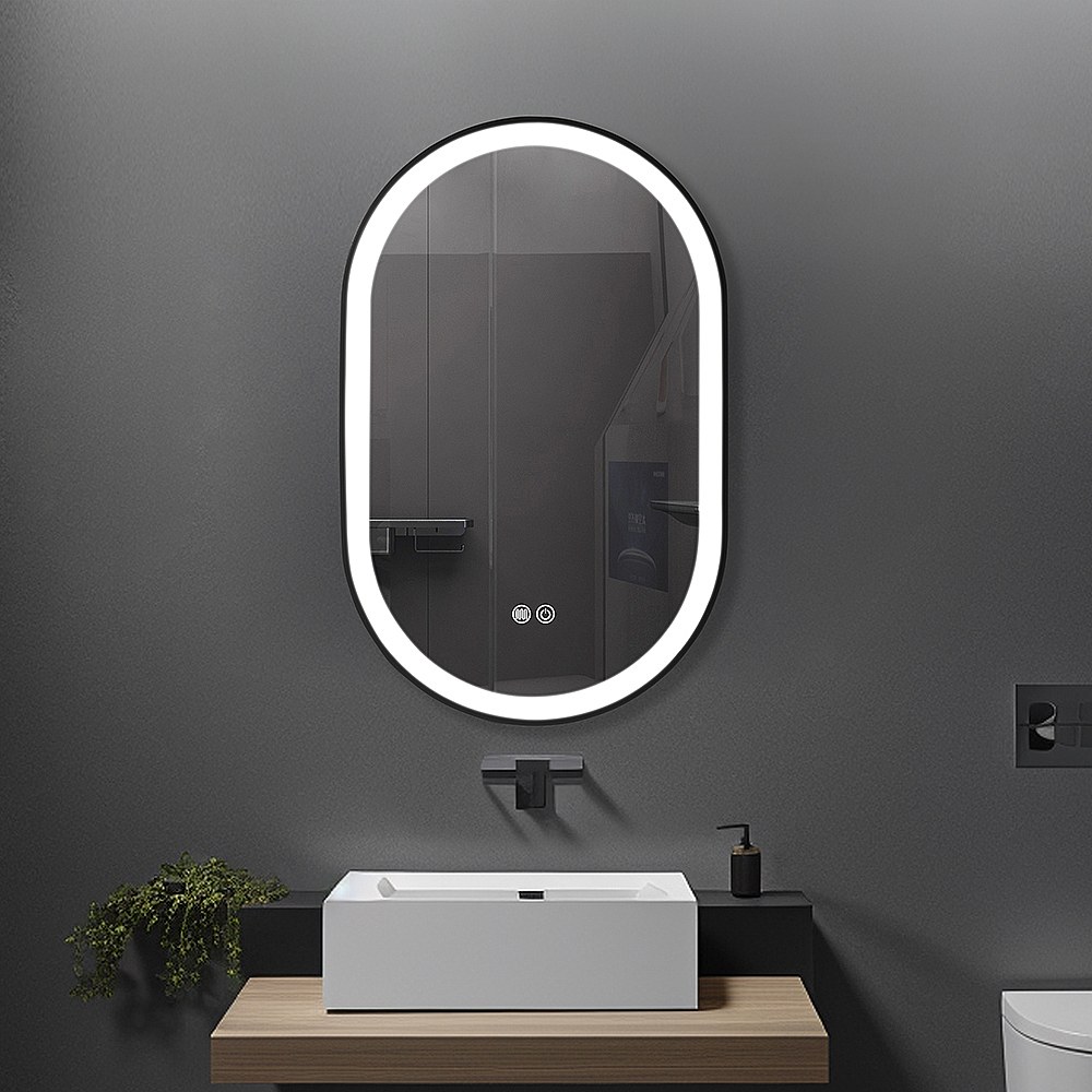 Miroir salle de bain LED ovale 50x80cm anti buée avec cadre en aluminium noir- LuxuryBain