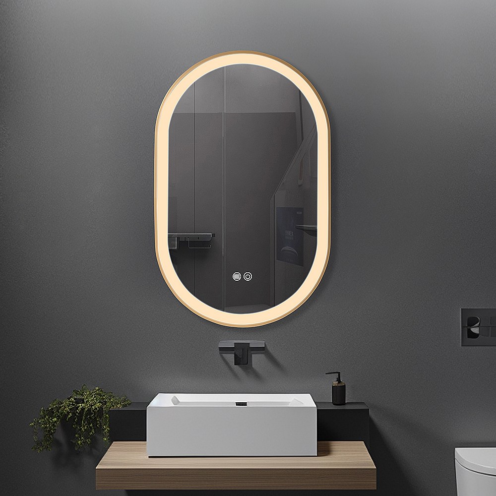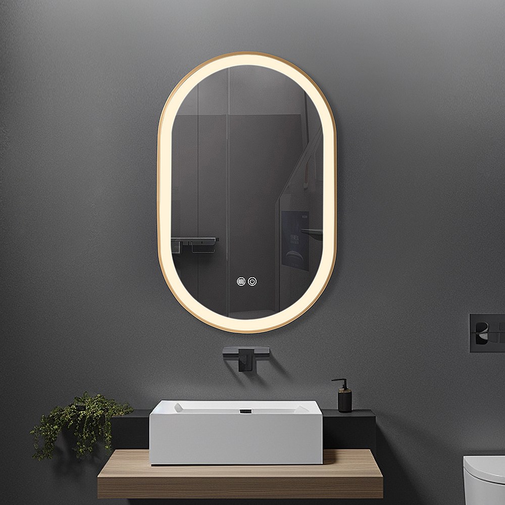 Miroir salle de bain LED ovale 60x90cm anti buée avec cadre en aluminium doré- LuxuryBain
