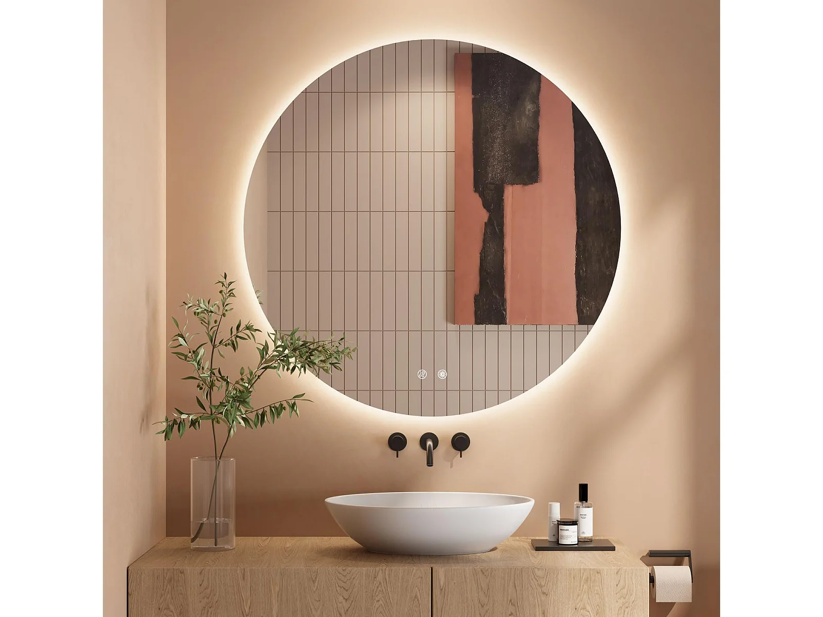 Miroir lumineux rond 80cm avec 3 Couleurs + Dimmable + Anti-buée, Mural Miroir salle de bain