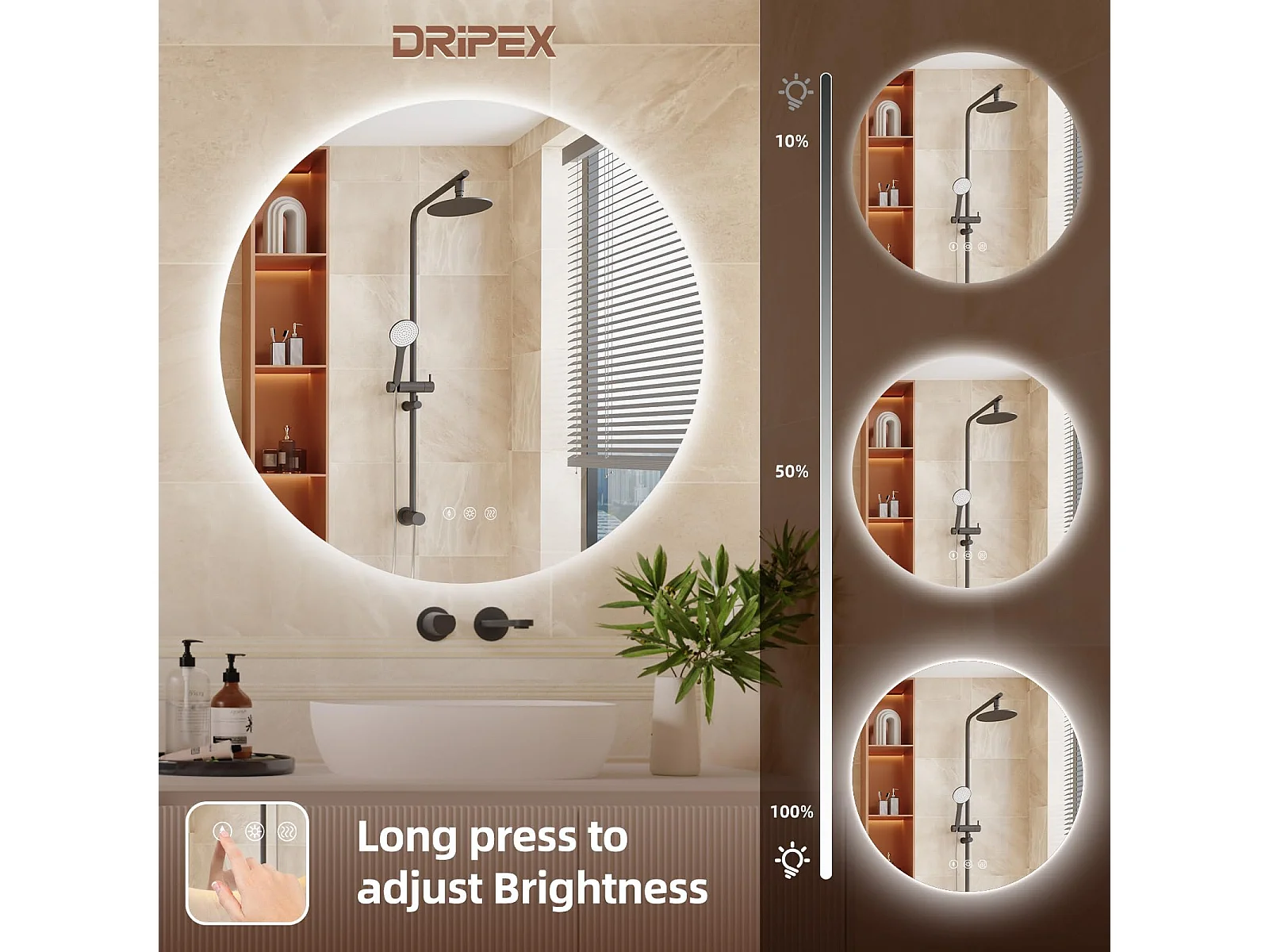 Miroir de salle de bain, fonction antibuée, réglage de la luminosité à trois vitesses, D80cm
